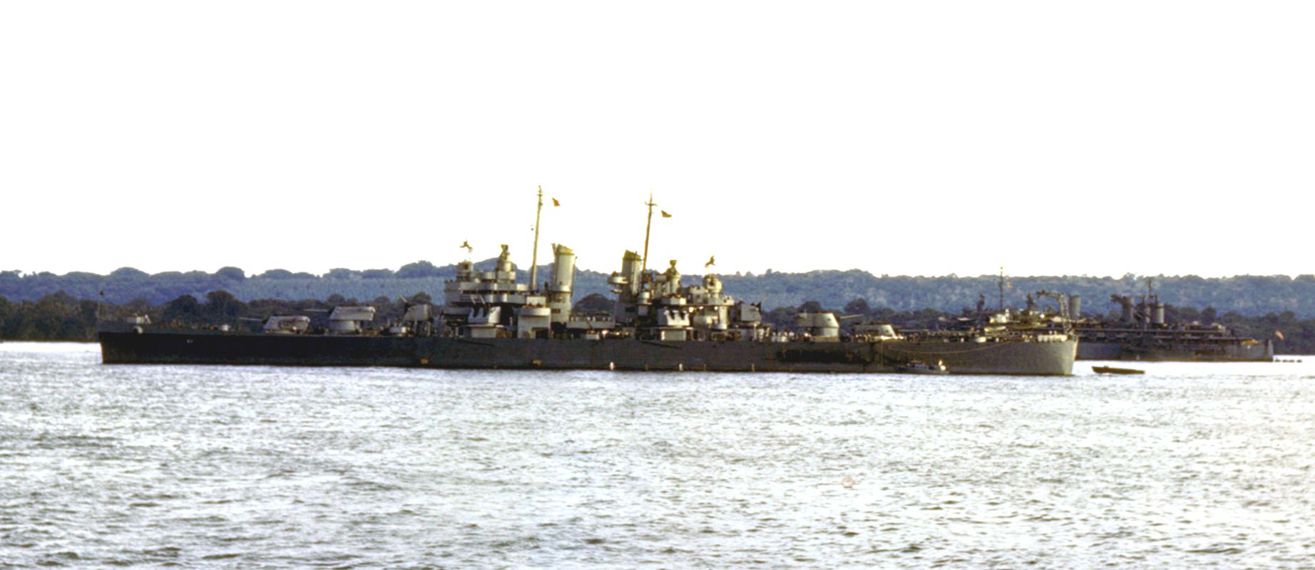 USS Montpelier anchored at Espiritu on one of several occasions in the second half of 1943. Photo by Dayton Brown. |