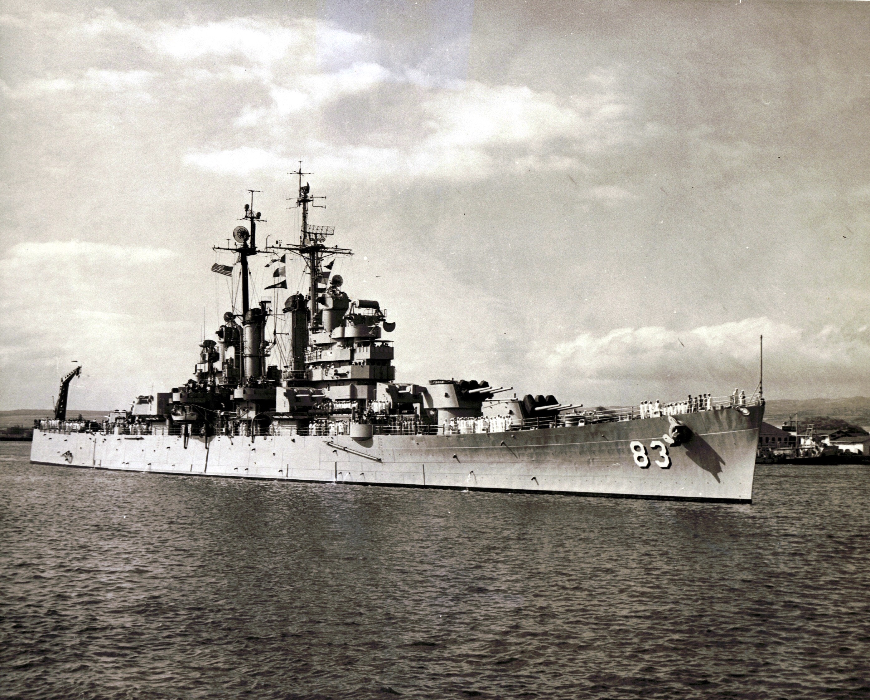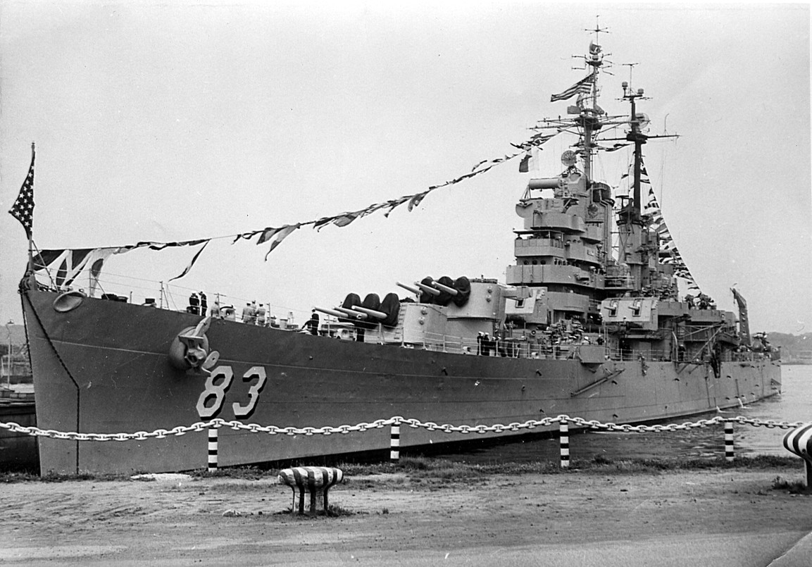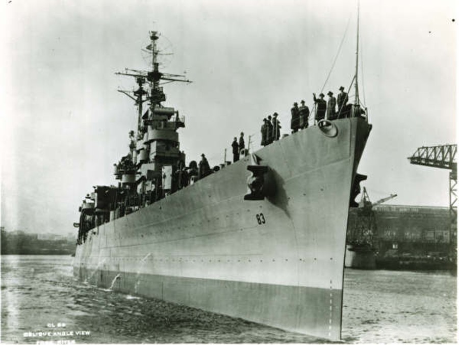 CLASS - CLEVELAND Displacement 10,000 Tons, Dimensions, 610' 1" (oa) x 66' 4" x 25' (Max) Armament 12 x 6"/47, 12 x 5"/38AA, 28 x 40mm, 10 x 20mm, 4 Aircraft Armor, 5" Belt, 6" Turrets, 2" Deck, 5" Conning Tower. Machinery, 100,000 SHP; Geared Turbines, 4 screws Speed, 32.5 Knots, Crew 1255. Operational and Building Data Ordered 09 SEP 1940 Keel laid on 25 SEP 1944 by the Fore River Shipyard, Bethlehem Steel Corp., Quincy, MA Launched 05 MAR 1945 Commissioned 29 OCT 1946 Decommissioned 27 JUN 1956 Stricken 01 APR 1960 Fate: Sold for scrap on 31 OCT 1960 to Nicolai Joffe Corp., Beverly Hills, CA. |