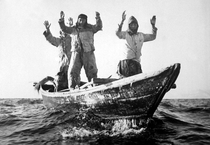 157k | Three Korean Communists in a fishing boat are captured by the USS Manchester off the coast of Korea on 10 May 1951. | Tommy Trampp | |