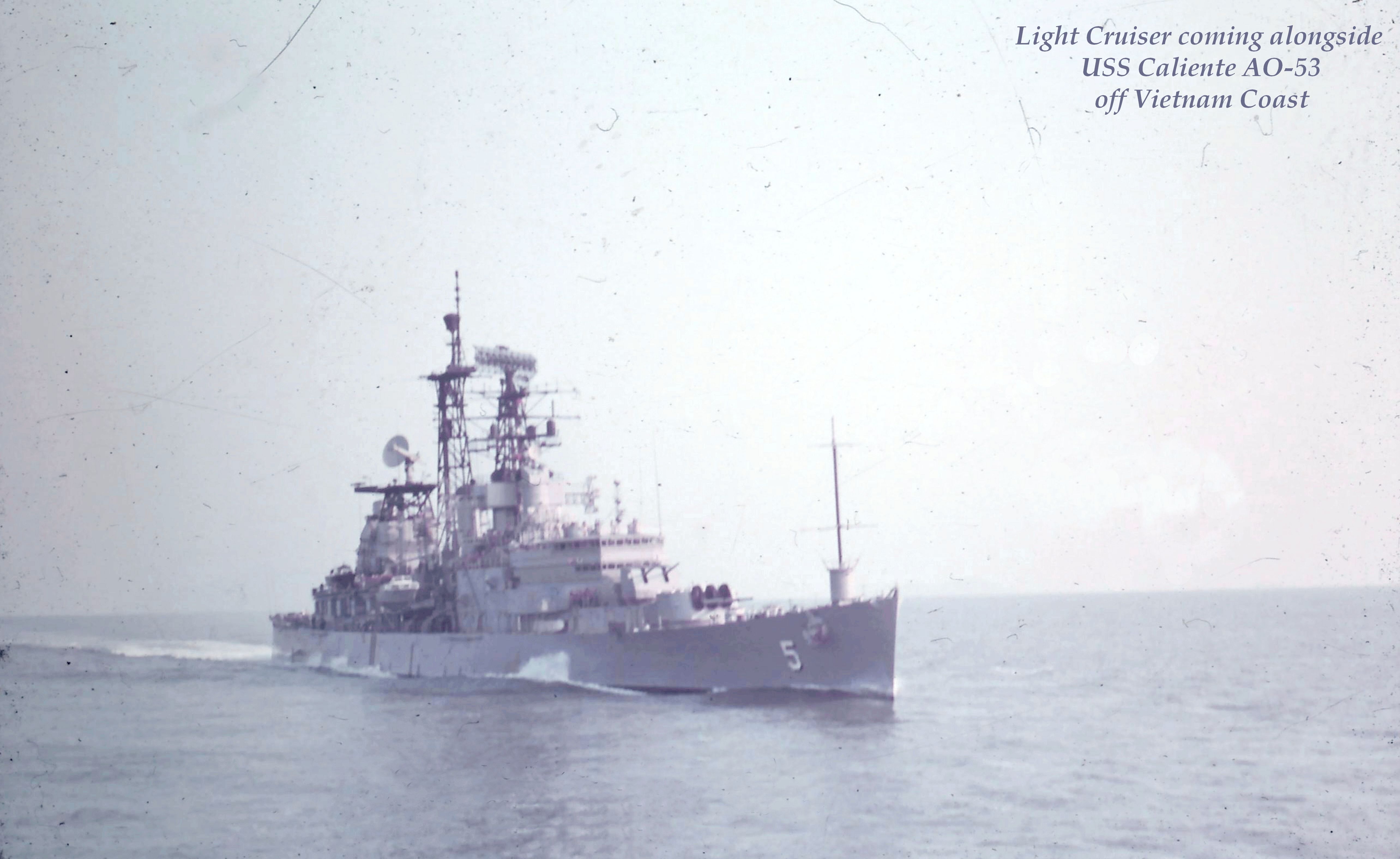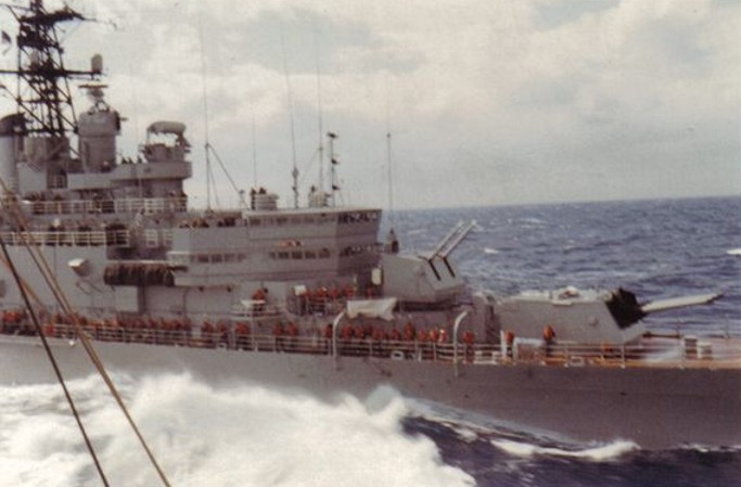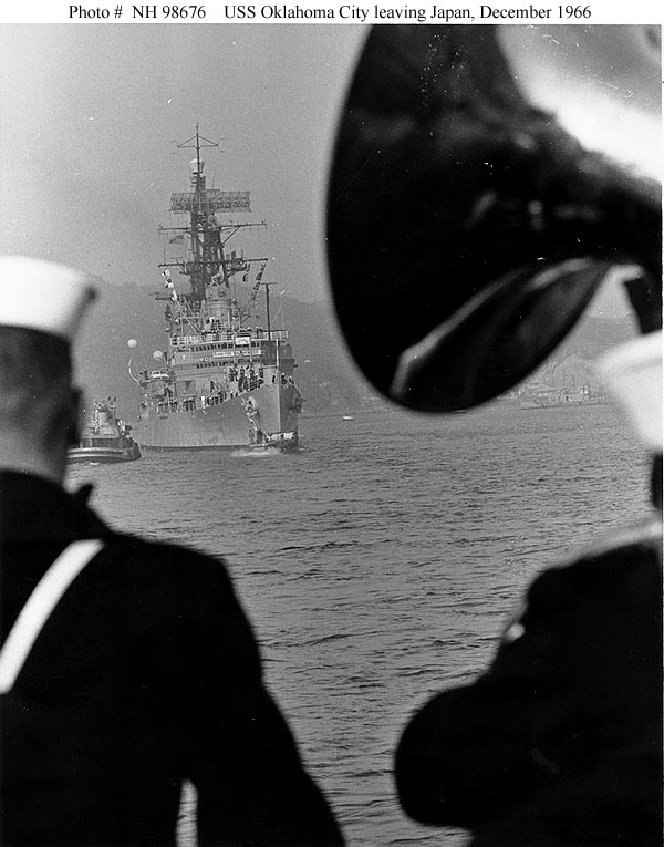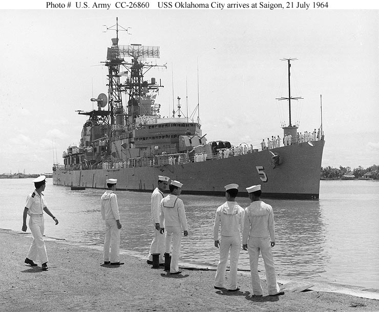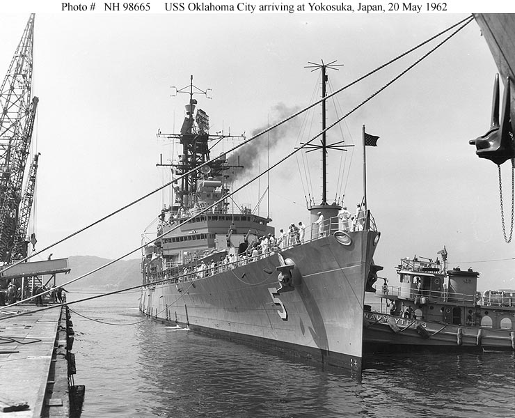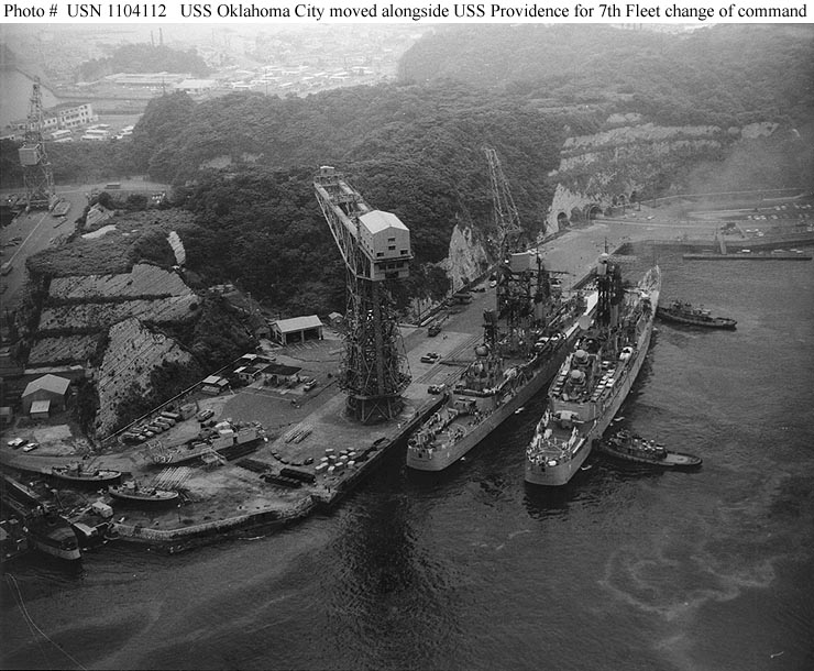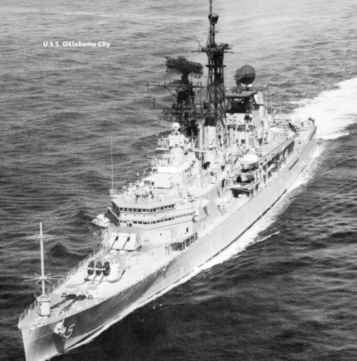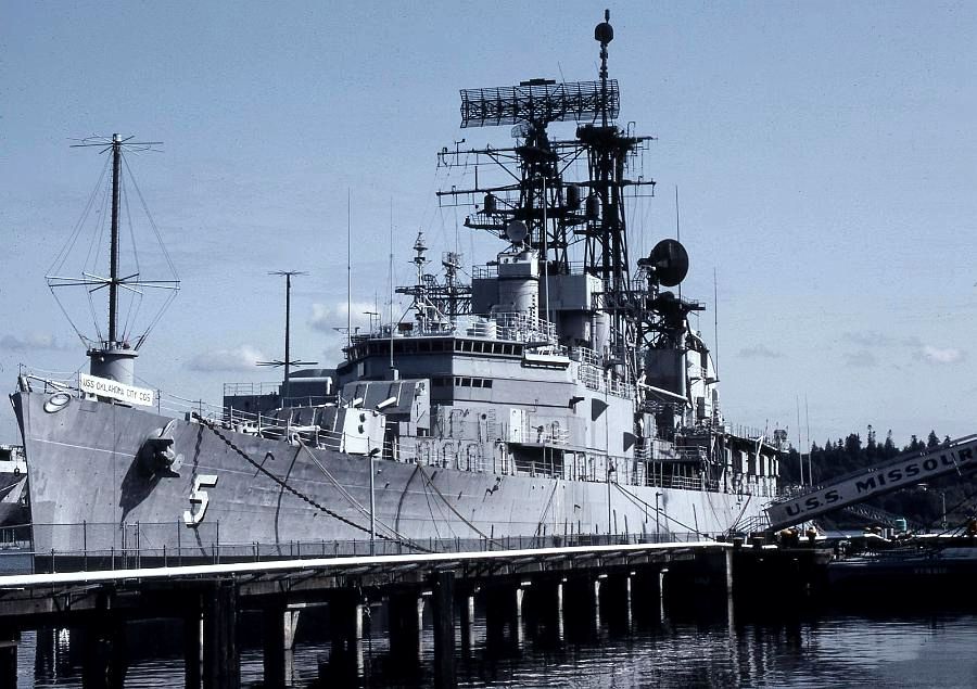 110k | USS Oklahoma City (CLG 5), COMSEVENTHFLT Flagship, taken on 24 February 1973. Photo taken from USS Oriskany (CVA 34) during her 1972-1973 WestPac cruise. From the collection of Ron Camp. | Bob Canchola | |