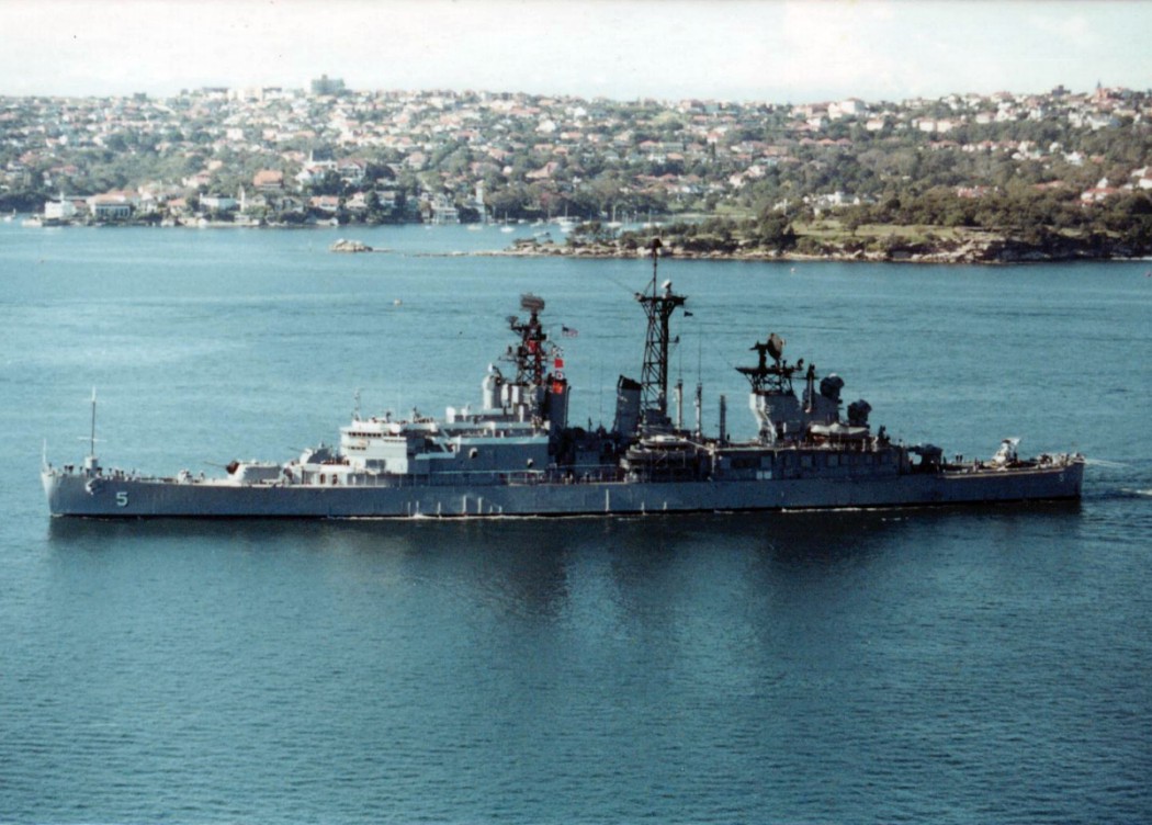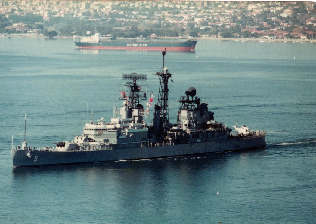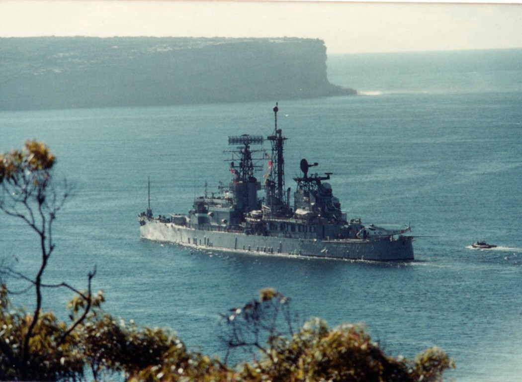177k | Port side view, underway in Sydney Harbor, Australia, late 1970's. | Barry A. Seward | |