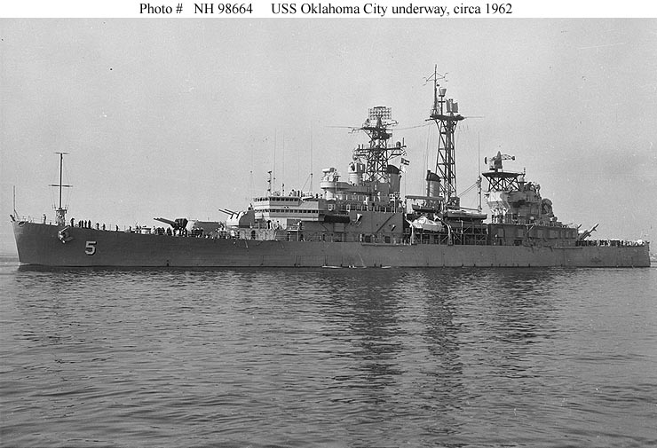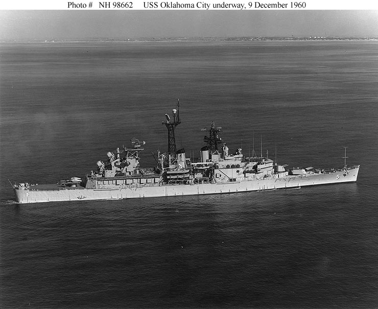 USS Oklahoma City (CLG 5) Underway on 9 December 1960. Photographed by PH2 R.J. Robey, USN. Official U.S. Navy Photograph, from the collections of the Naval Historical Center #NH 98662. |