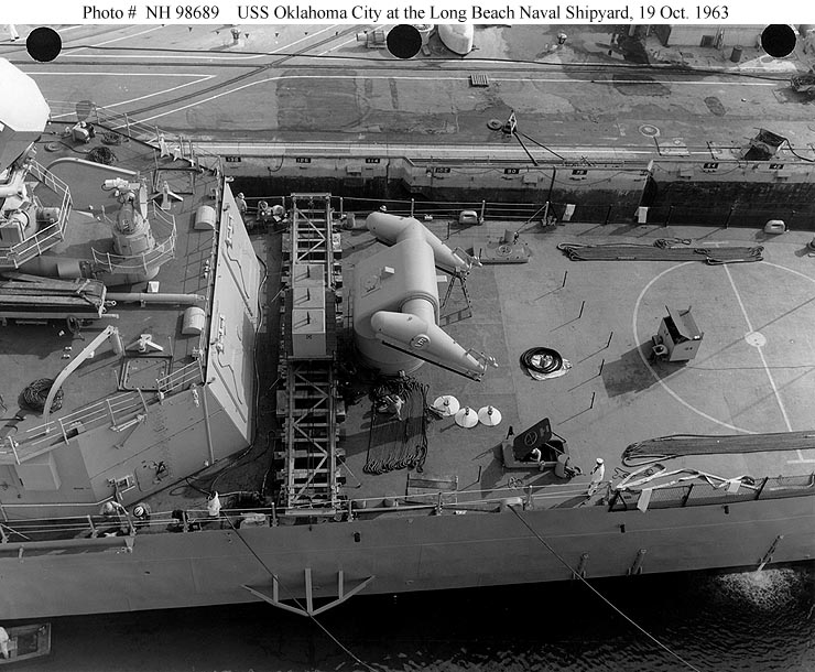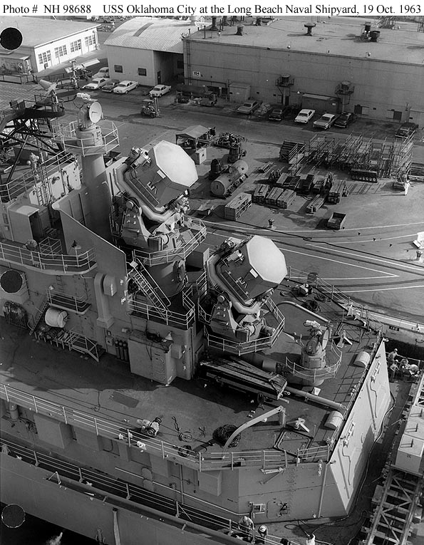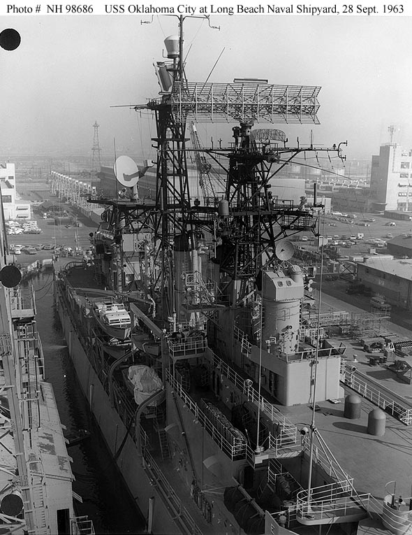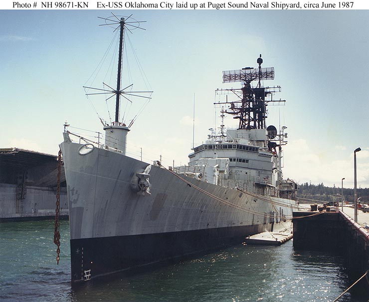 ex-Oklahoma City (CG 5) Awaiting disposal at the Puget Sound Naval Shipyard, Bremerton, Washington, circa June 1987. Official U.S. Navy Photograph, from the collections of the Naval Historical Center #NH 98671-KN. |