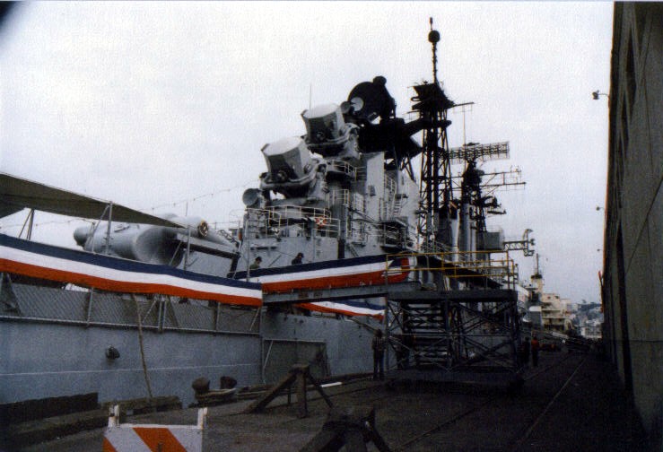 92k | Good detail picture Showing many details of the conversion. Note Forward 6" gun remains, Dual 5"/38 is moved forward and the entire superstructure is moved forward. | USN | |