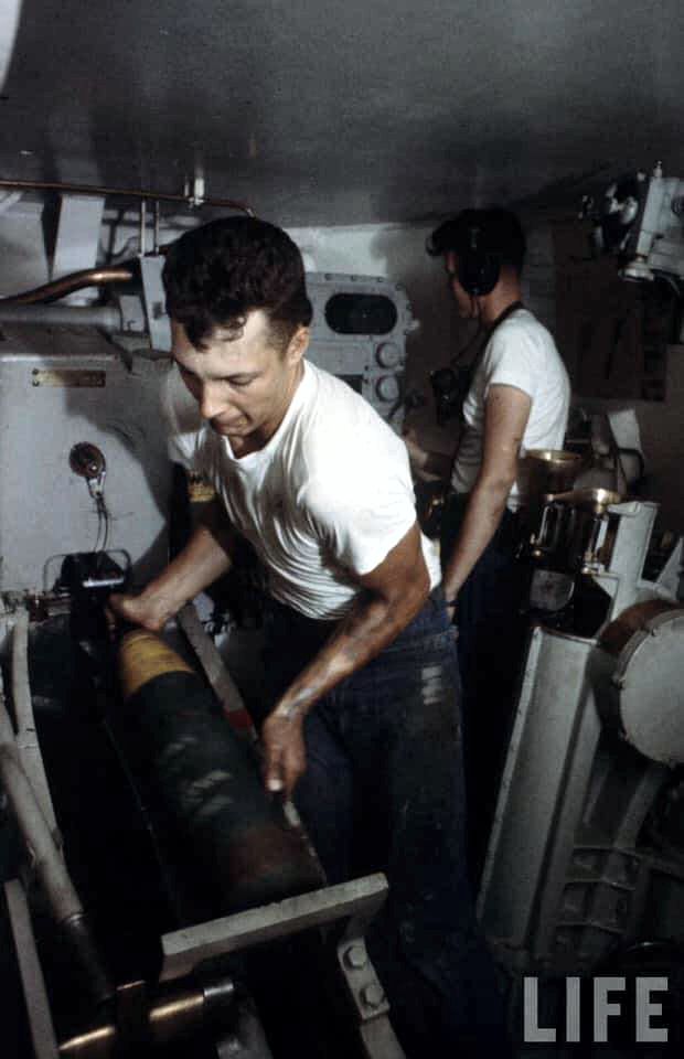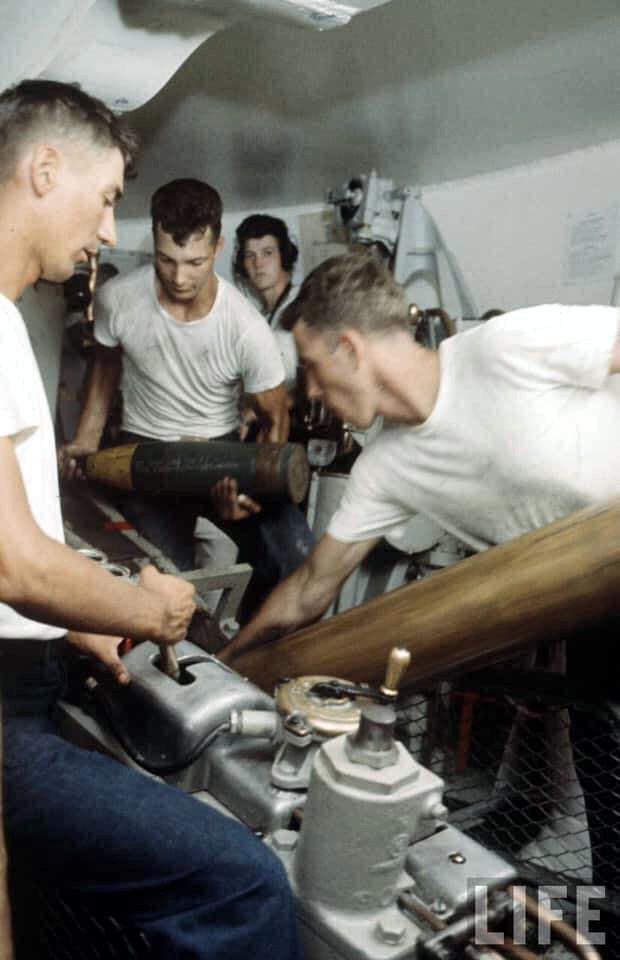 65k | Six inch/47 caliber guns in action, date unknown. | Craig Chaddock | |