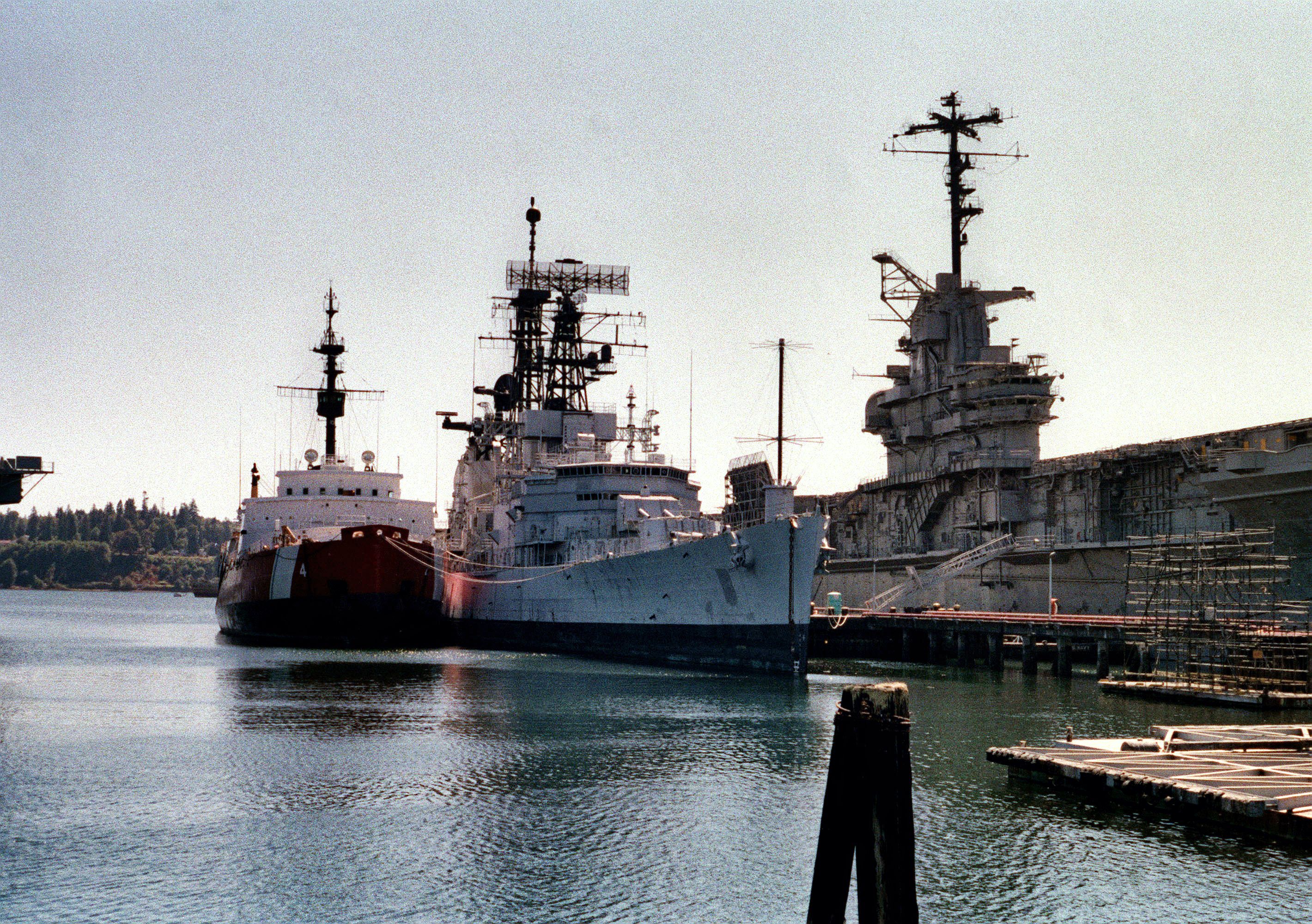 From left to right: ex-USCGC Glacier (WAGB 4), ex-Oklahoma City (CG 5), ex-Oriskany (CV 34). Puget Sound Naval Shipyard taken by LT Fallon 1990. Combined Military Service Digital Photographic Files #DN-SC-90-03979 |