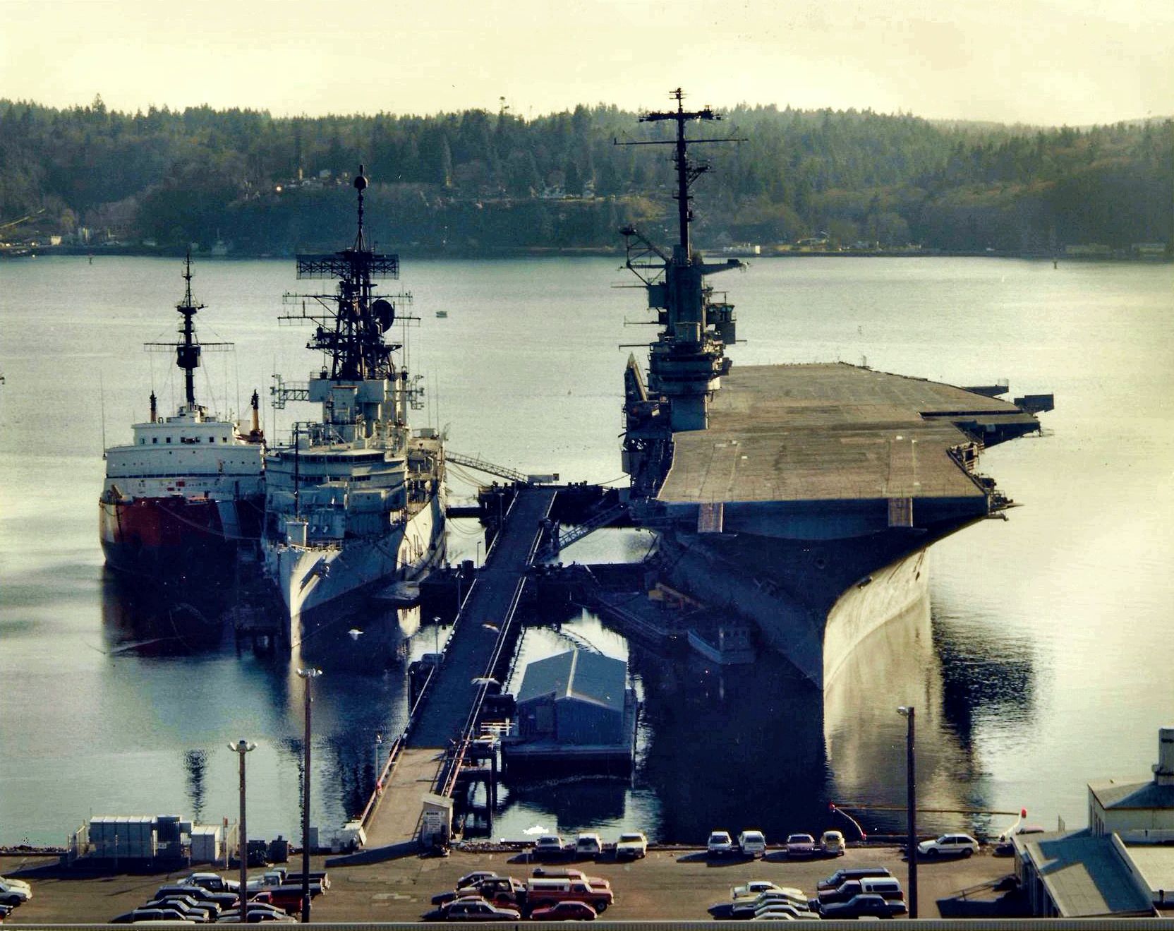 From left to right: ex-USCGC Glacier (WAGB 4), ex-Oklahoma City (CG 5},ex-Oriskany (CV 34). Puget Sound Naval Shipyard. Douglas Gillmer |