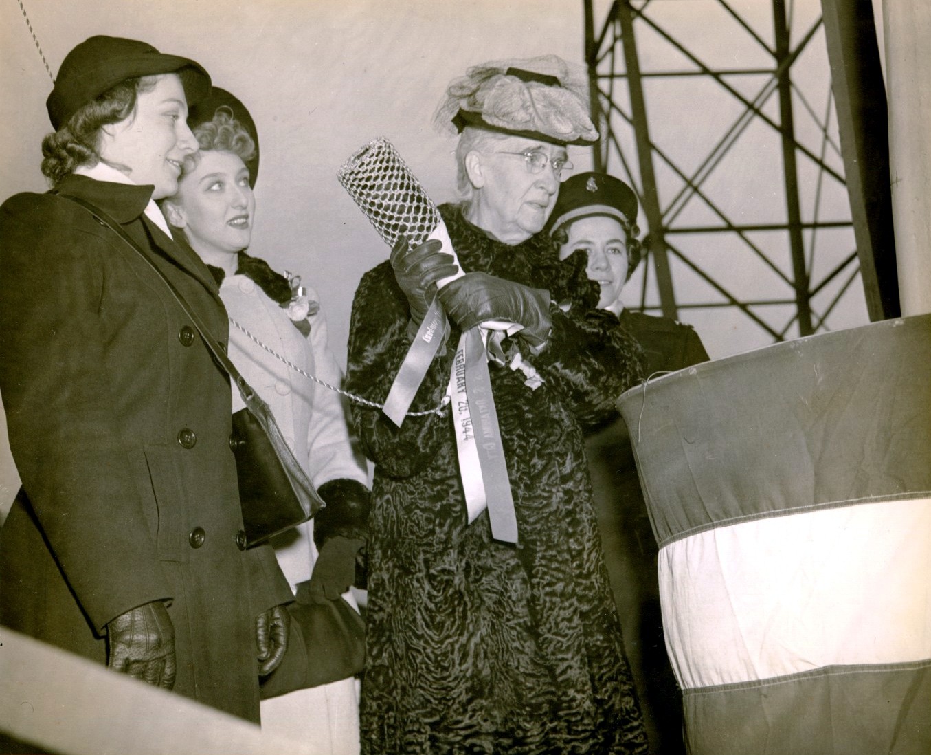 319k | Mrs. Anton H. Classen, sponsor, Oklahoma City (CL 91), 20 February 1944 readies the champagne bottle to christen the ship during her launching at the Cramp Shipbuilding Company, Philadelphia, Pennsylvania. | Bill Gonyo | |