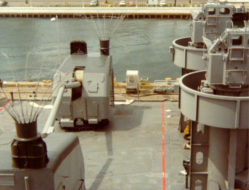 84k | The two 5-Inch/38 gun mounts which were installed midships as directed by President Kennedy. | |