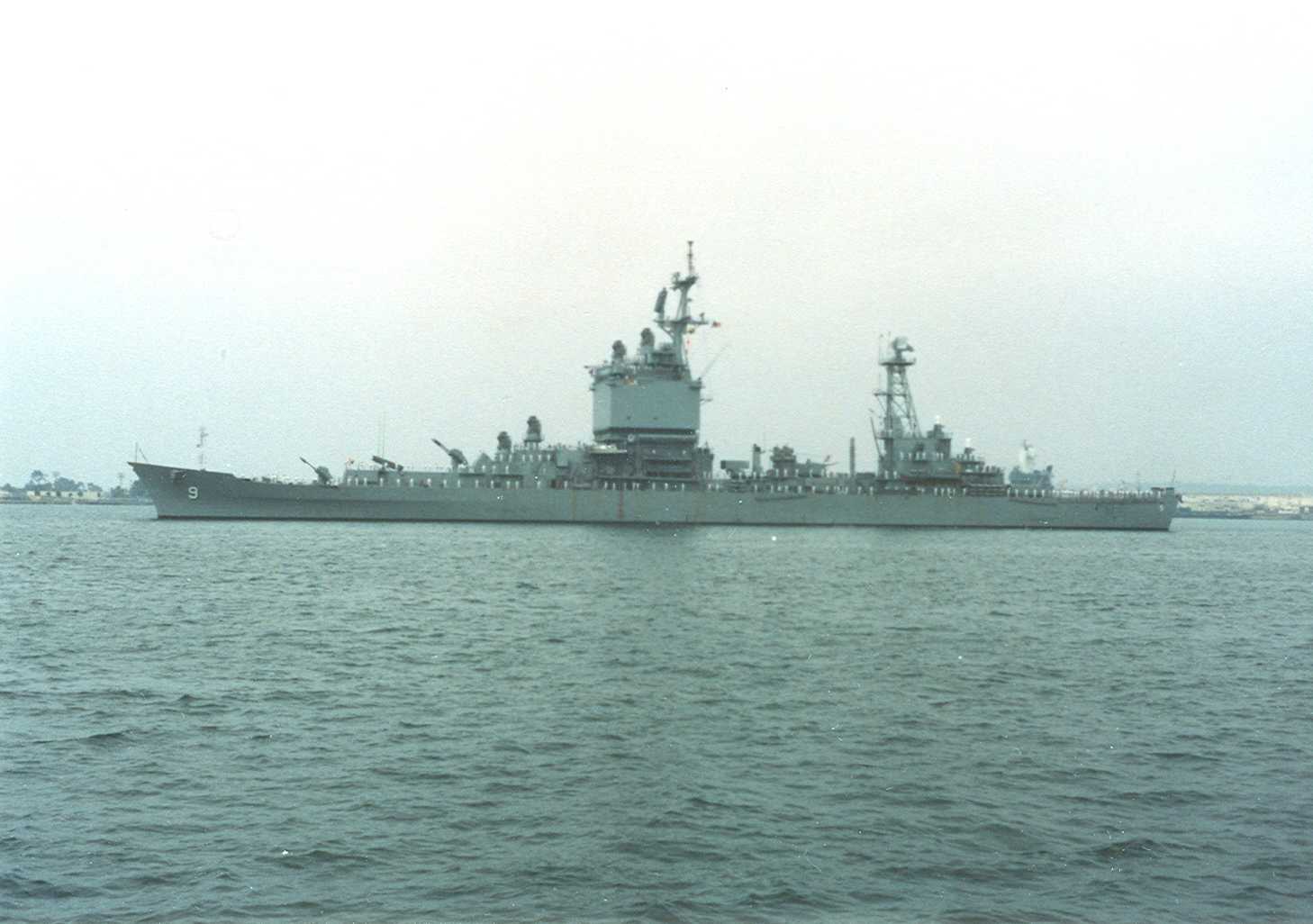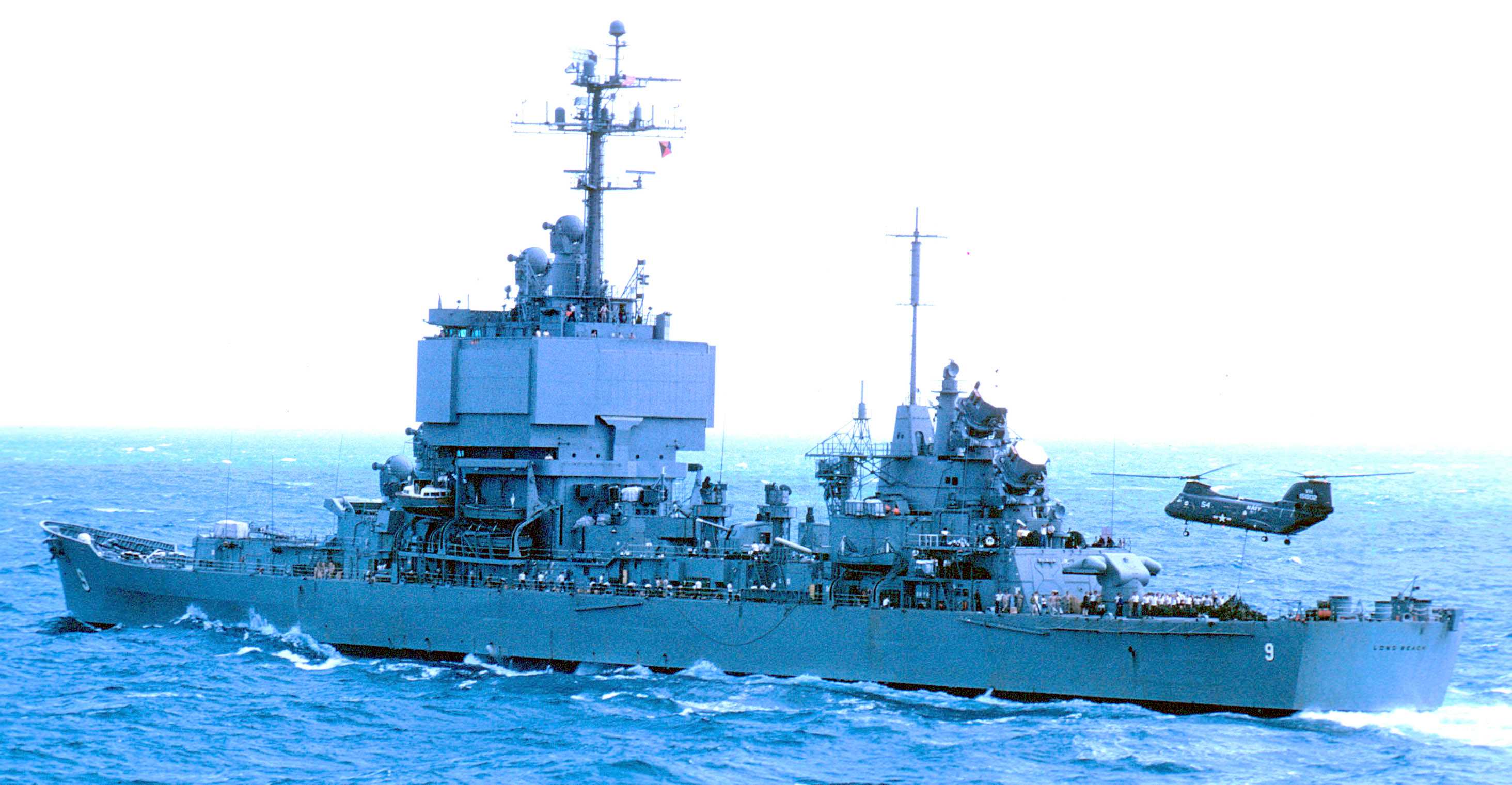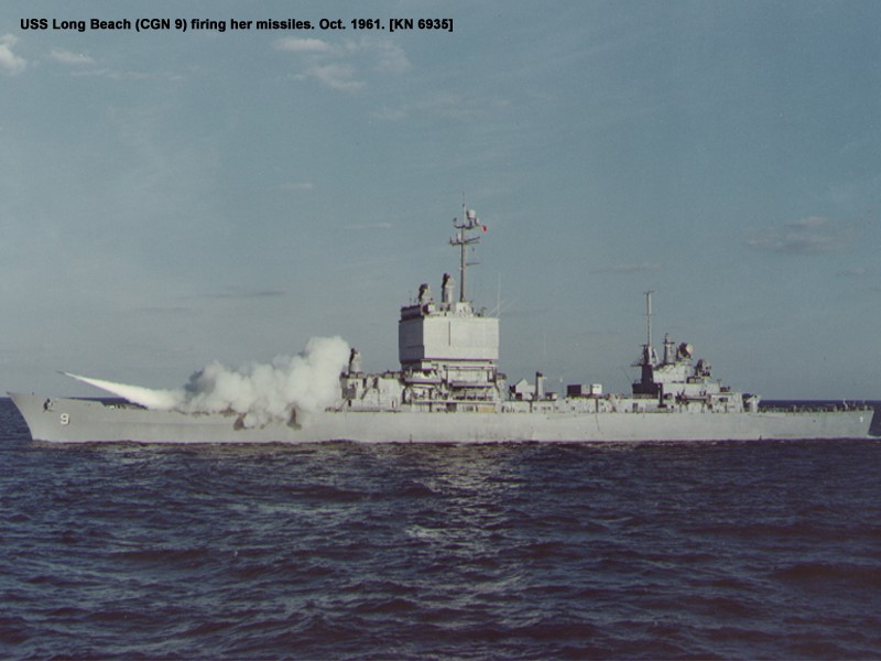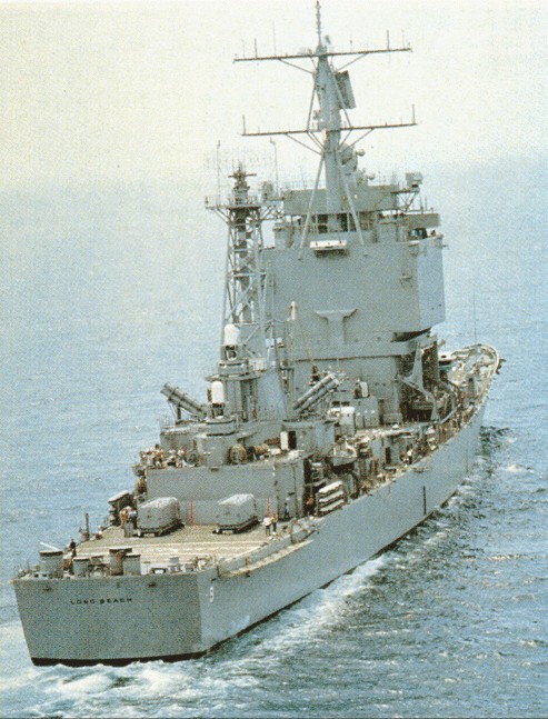 1m | Starboard beam view of the Nuclear-Powered Guided Missile Cruiser USS Long Beach (CGN 9) underway near the coast of Southern California, on 21 June 1989. Photo taken by PH1 Wilcox. |