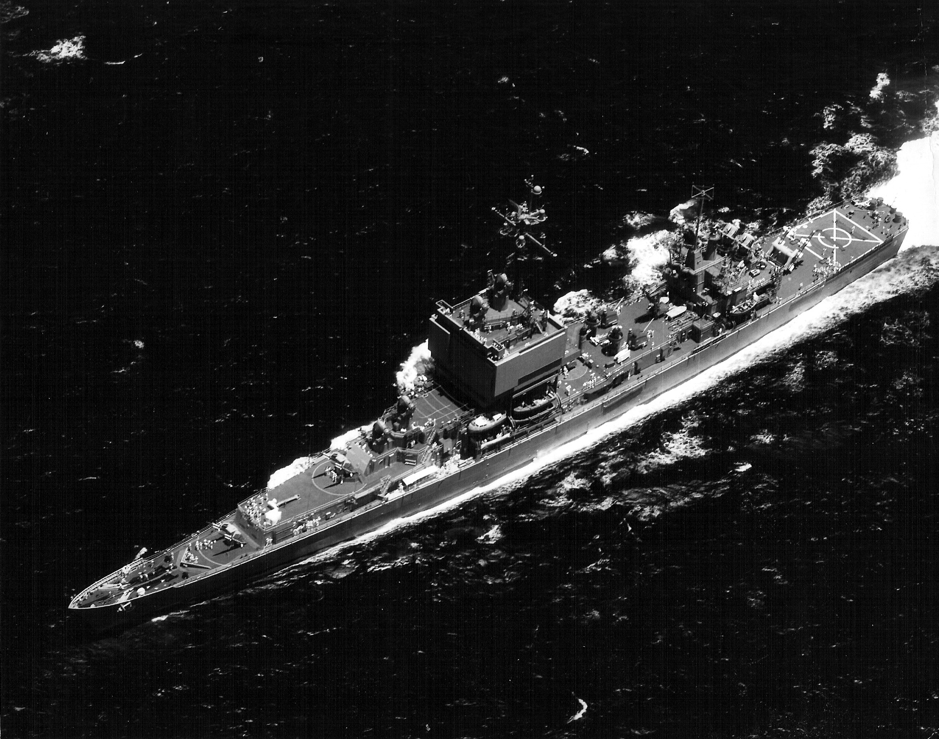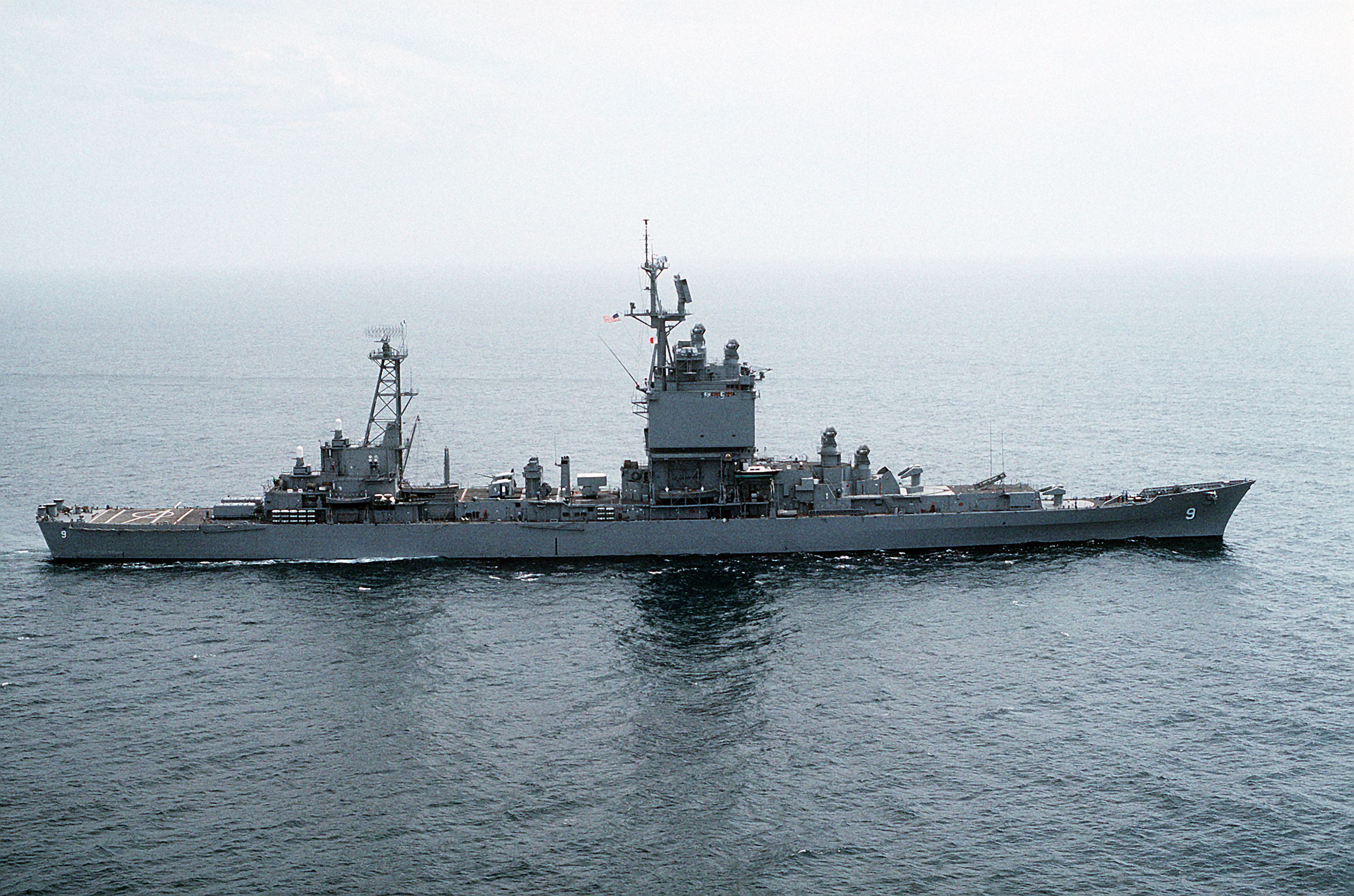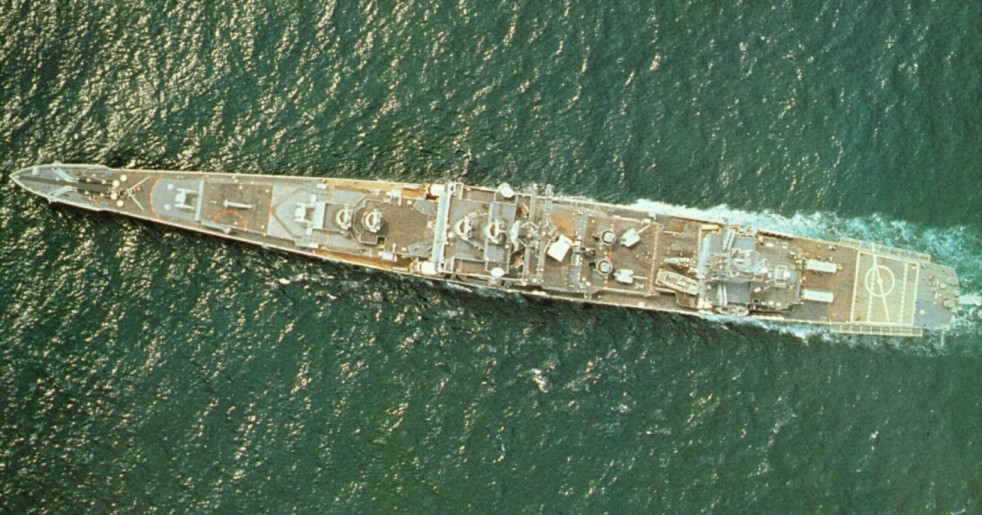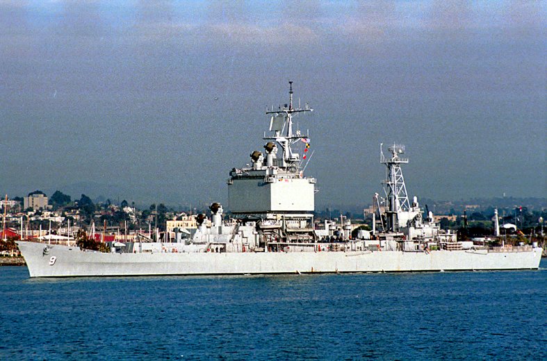 1m | Starboard beam view of the Nuclear-Powered Guided Missile Cruiser USS Long Beach (CGN 9) underway near the coast of Southern California, on 21 June 1989. Photo taken by PH1 Wilcox. |