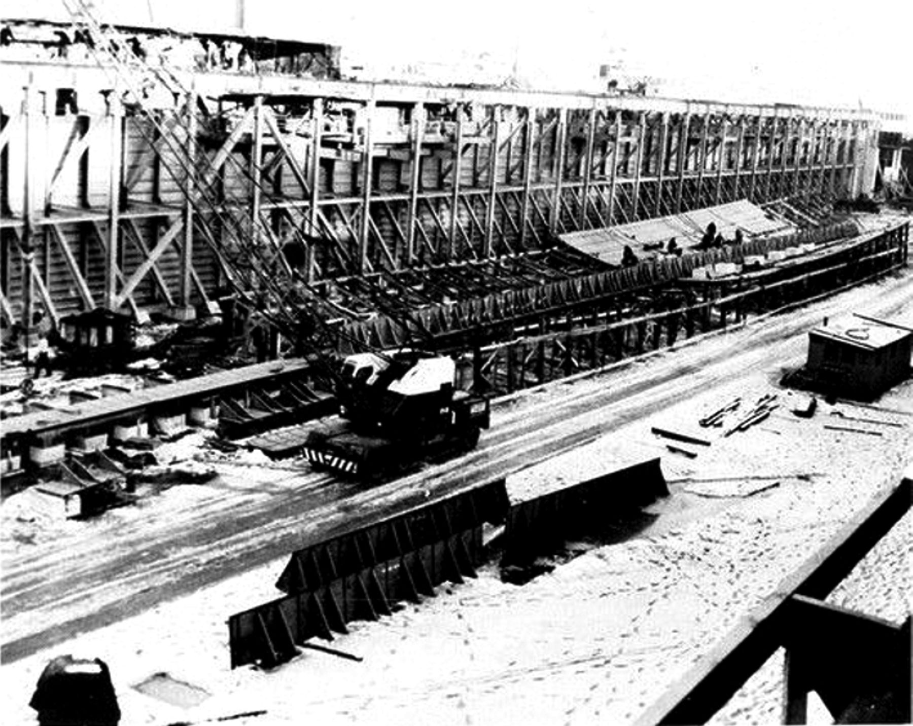 412k | Keel of the guided missile cruiser Long Beach (CGN 160) at the Fore River Shipyard, Quincy, Massachusetts, circa December 1957. U.S. Navy photo from the USS Long Beach (CGN 9) 1961-1963 cruise book. |