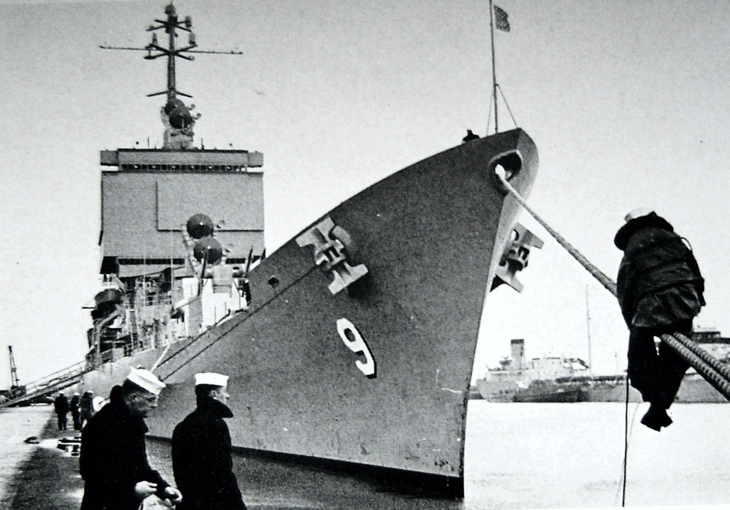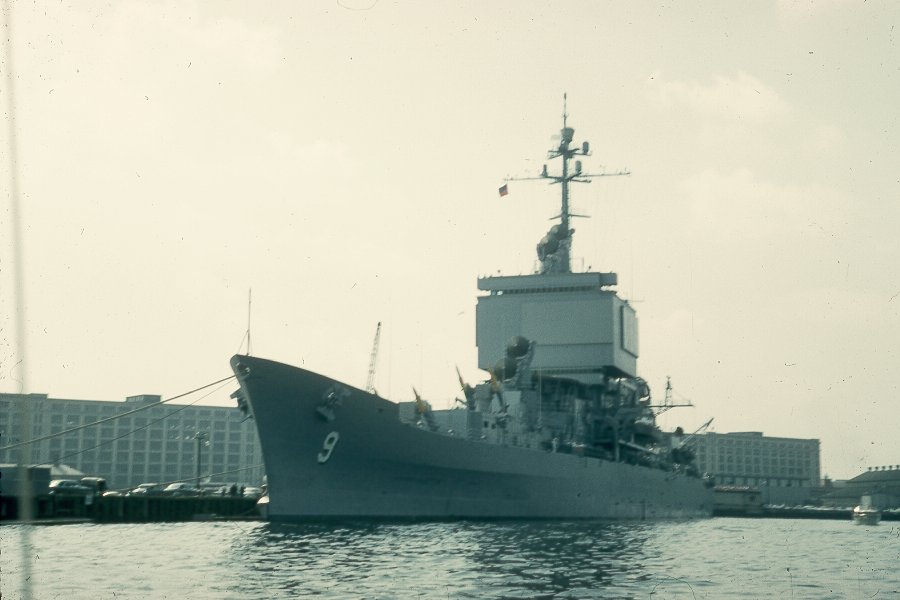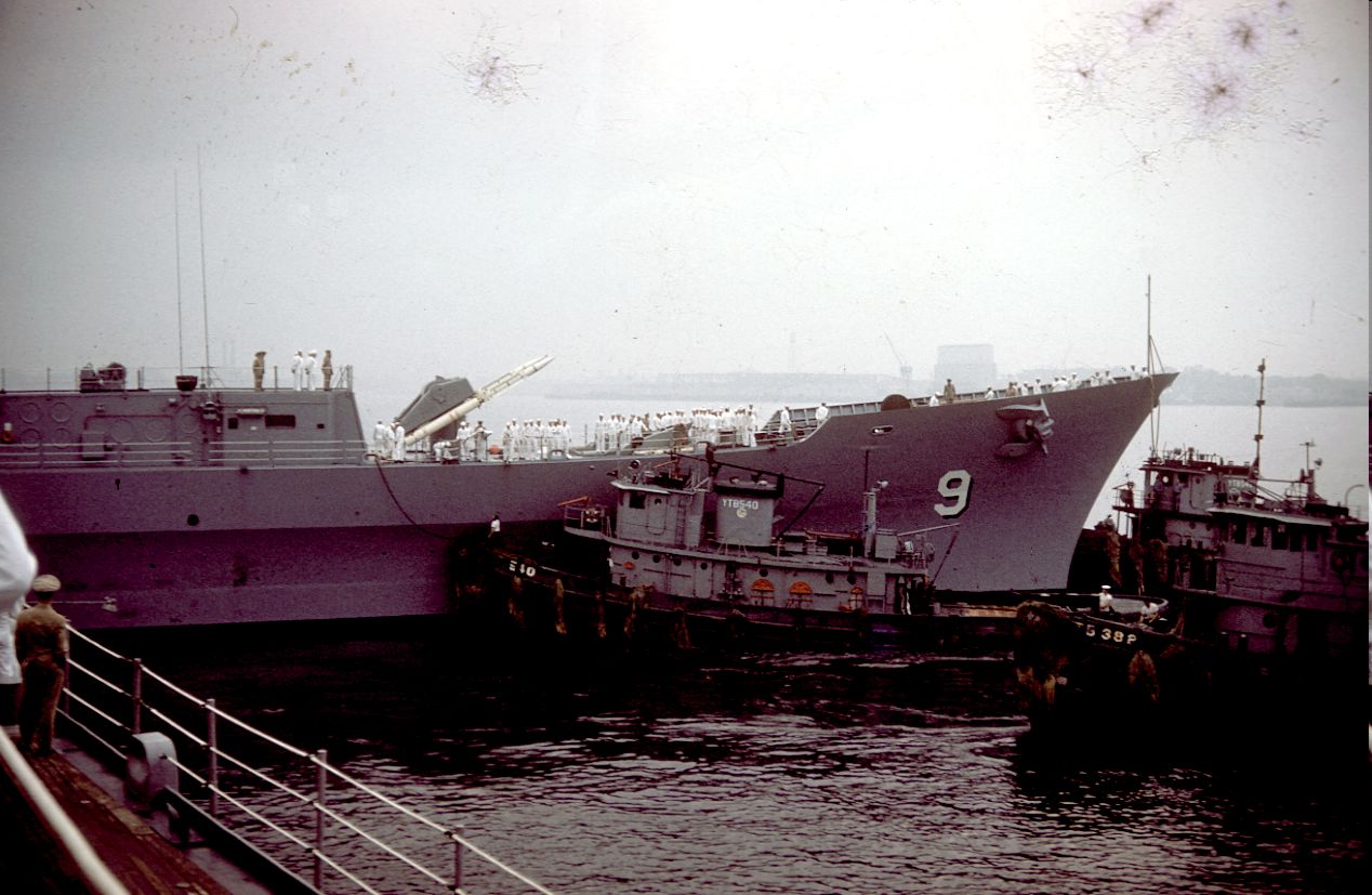 149k | USS Long Beach (CGN 9) approaching pier at South Boston annex Early September 1961 prior to Commissioning on 9 September 1961. Picture taken from USS Boston (CAG 1) tie up at South Boston Annex Jetty. | Roy Williams |