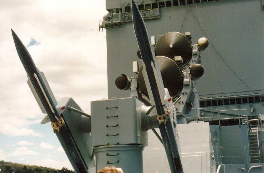 103k | MK-10 Terrier missile launcher and two AN/SPG-55 fire control radars. Docked at Hobart, Australia during Christmas 1987. | Nick Jansen |