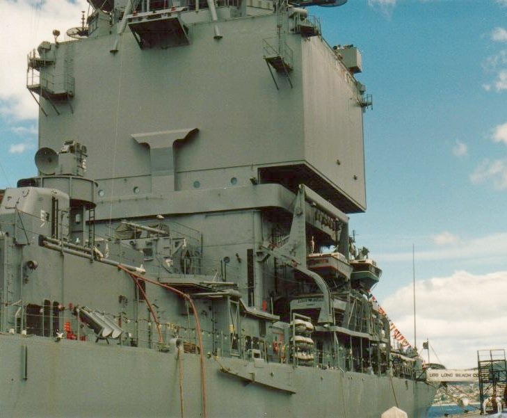 116k | Docked at Hobart, Australia during Christmas 1987. Viewed looking from the bow to aft with two twin MK-10 Terrier SAM launchers and two AN/SPG-55 missile fire control radars. Long Beach is the only nuclear powered vessel ever allowed to dock at the Hobart wharves. All others have anchored mid-river. | Nick Jansen |