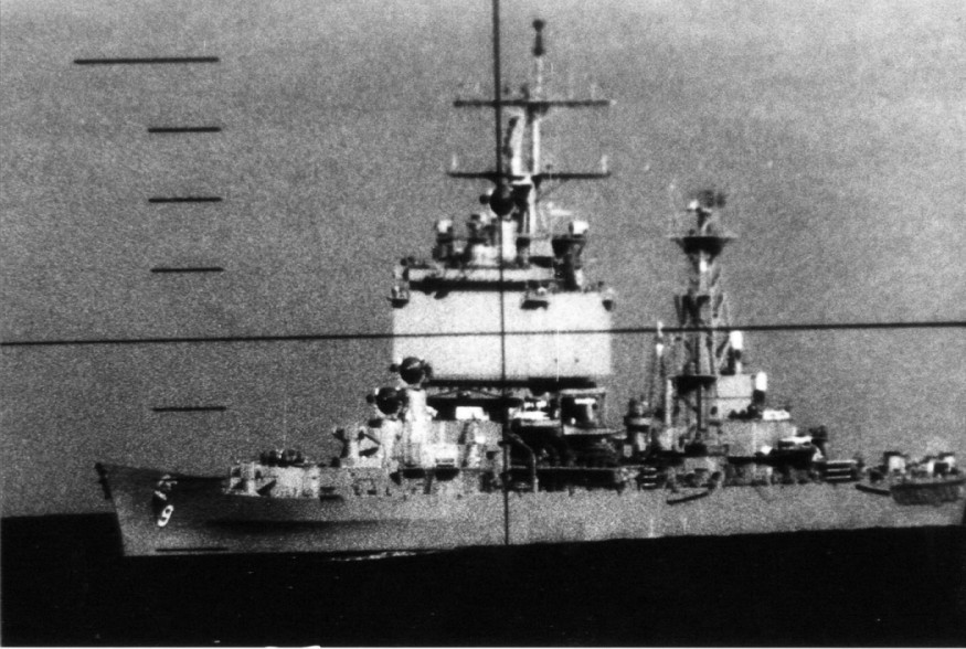 134k | The USS Long Beach (CGN 9) as seen through the periscope of the USS Plunger (SSN 595). Photo taken during Plunger's 1986 WESTPAC cruise. | Darryl Baker |