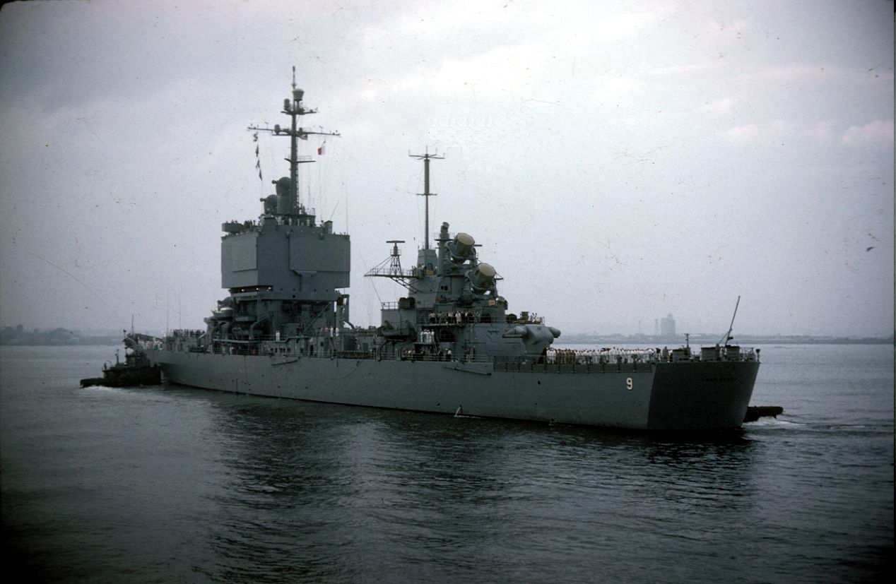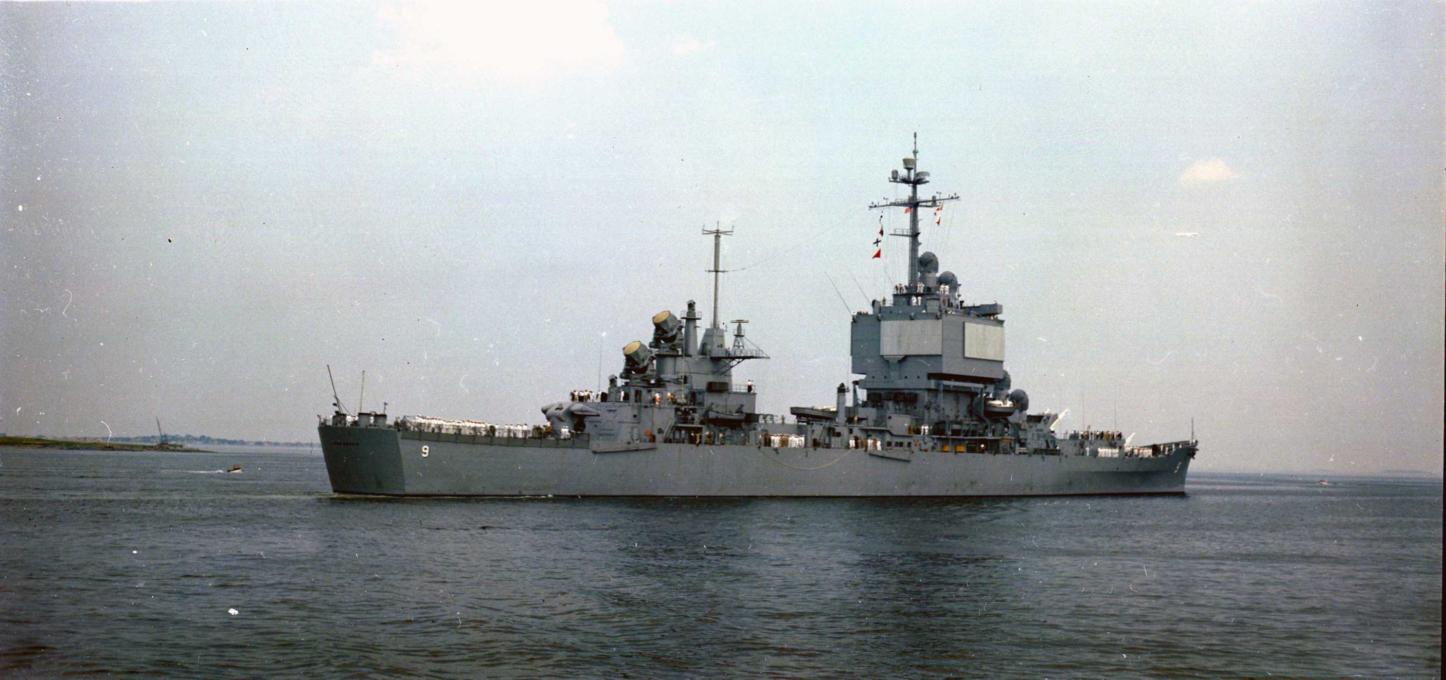 125k | USS Long Beach (CGN 9) entering Boston Harbor Early September 1961 prior to Commissioning on 9 September 1961. Picture taken from USS Boston (CAG 1) tie up at South Boston Annex Jetty. |