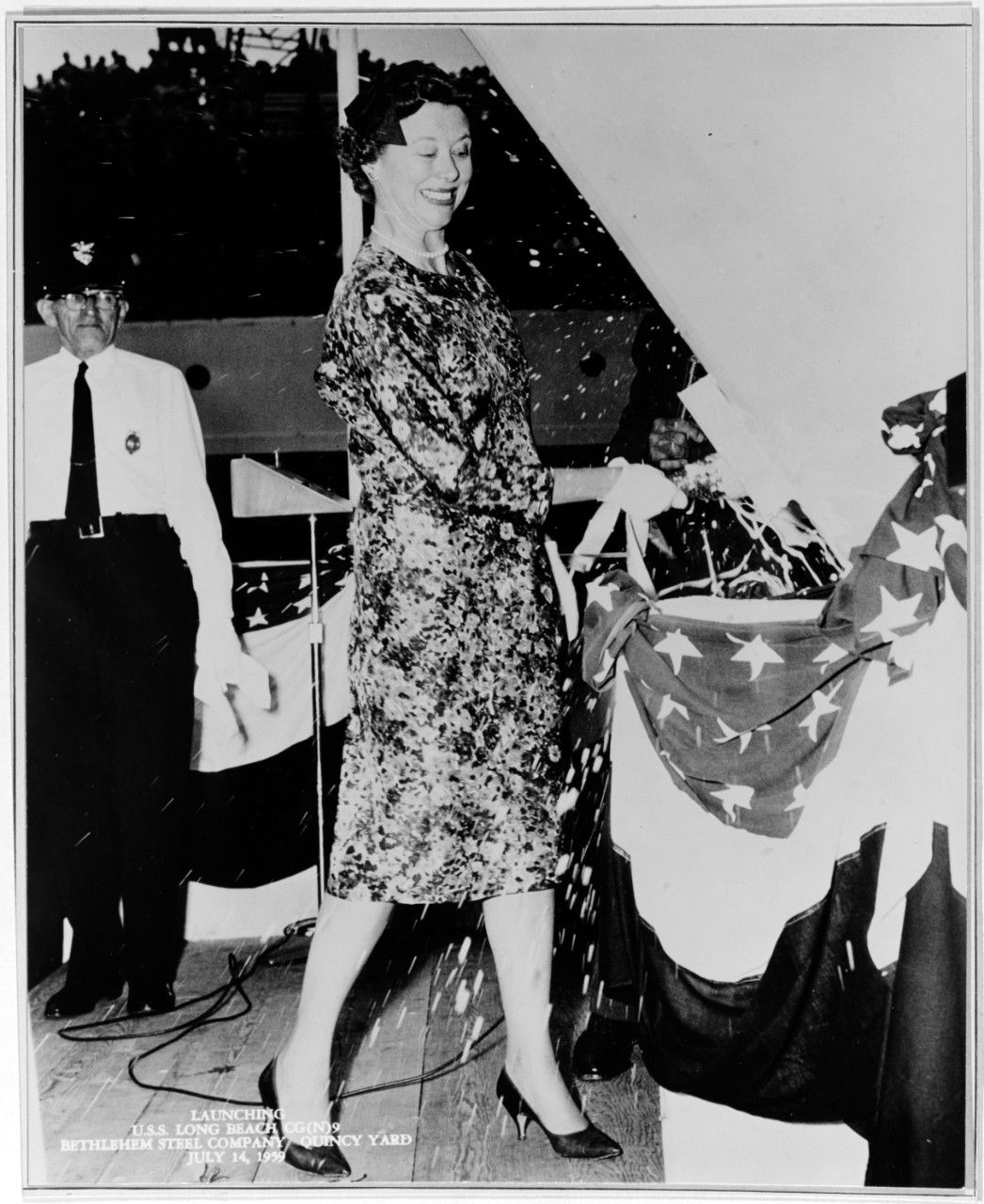 215k | Mrs. Craig Hosmer, wife of Congressman Hosmer of California, christening the Long Beach. | S. Dale Hargrave |