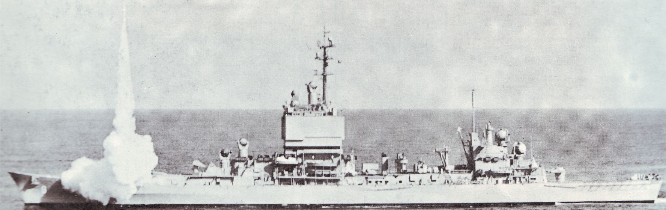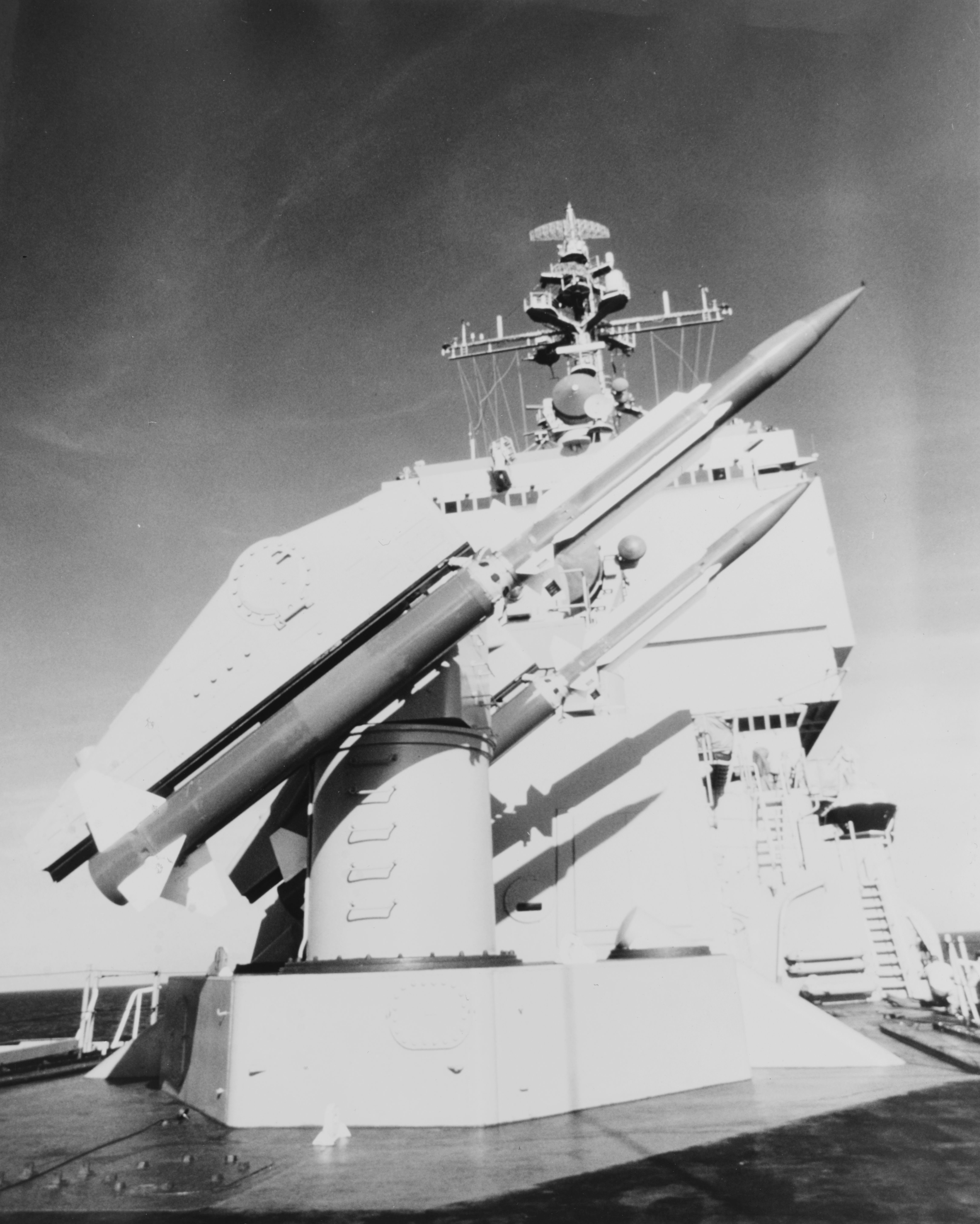 1.4m | T-SAM (Training Surface-to-Air Missile) "TERRIER" Missiles on #2 launcher, while the ship was in the South China Sea, 16 December 1976. NHHC photo #K-116480 |