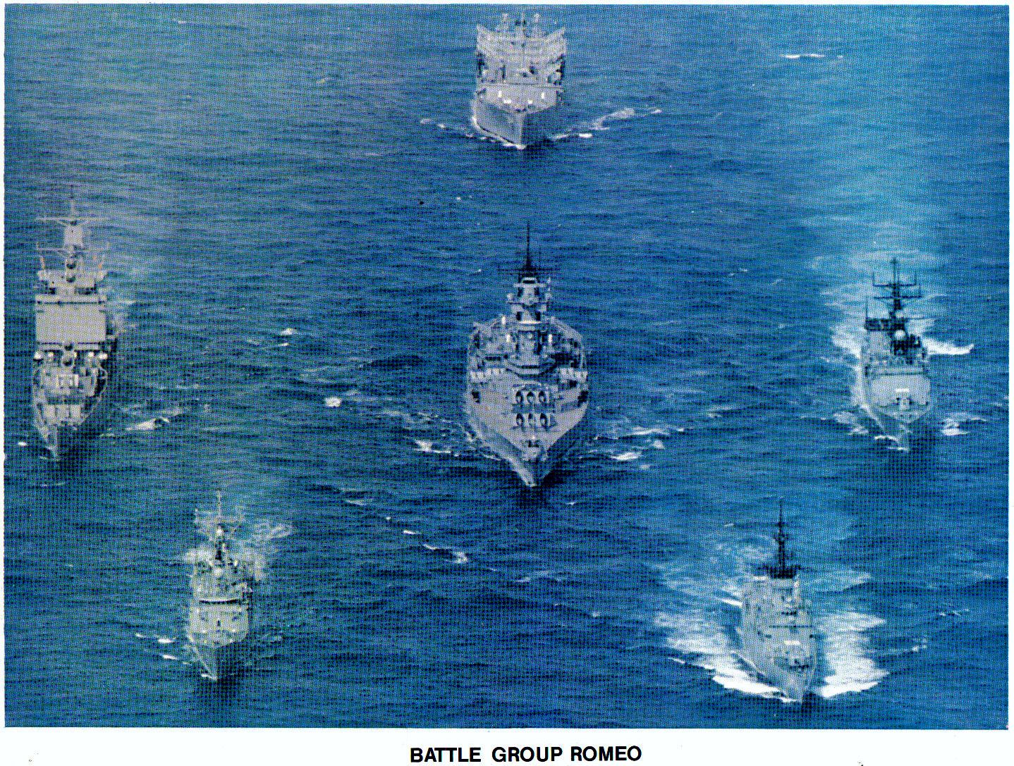 Battle Group Bravo, Indian Ocean, 10 June 1984 USS Davidson (FF 1045), USS Berkeley (DDG 15), USS Lewis B. Puller (FFG 23) USS Harold E. Holt (FF 1074), USS Wabash (AOR 5), USS Stein (FF 1065) USS O'Brien (DD 975), USS Kitty Hawk (CV 63), USS Chandler (DD 996) USS Long Beach (CGN 9) |