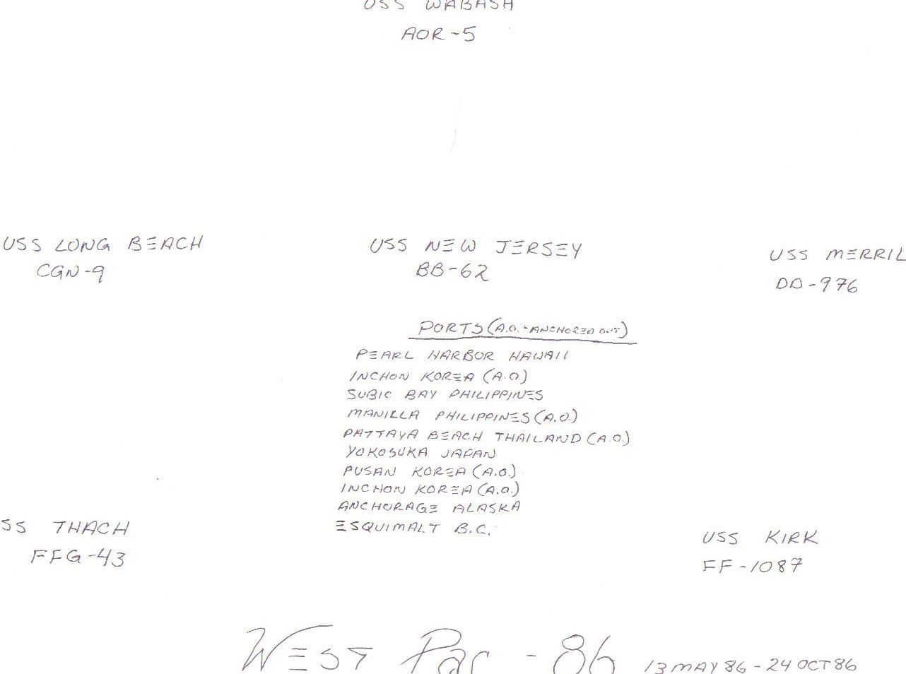 Battle Group Romeo (during USS Long Beach WestPac cruise - 13 May to 24 October 1986) USS Wabash (AOR 5)