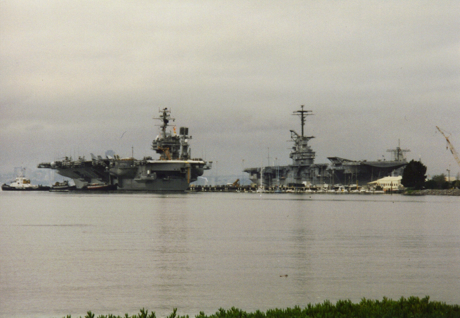 96k | Taken after her New Threat Upgrade (NTU). I guess the best way (most obvious way) to tell the difference between NTU and her "previous" days is the presence of the URN-25 TACAN on the forward mack. Photo 1990-91. | Ozzie Monge | ![]() |