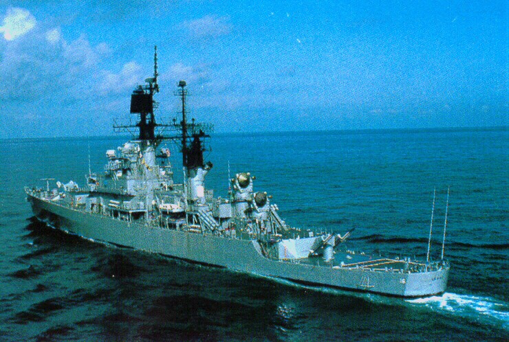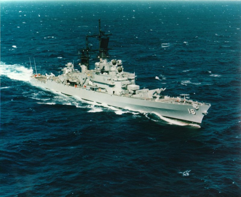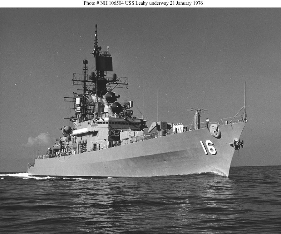 1.1m | USS Leahy (CG 16), underway off the coast of Southern California on 11 April 1989. JO1 Herskovitz, U.S. Navy. This is image is available in the holdings of the National Archives and Records Administration, cataloged under the National Archives Identifier (NAID) 6449886. |
