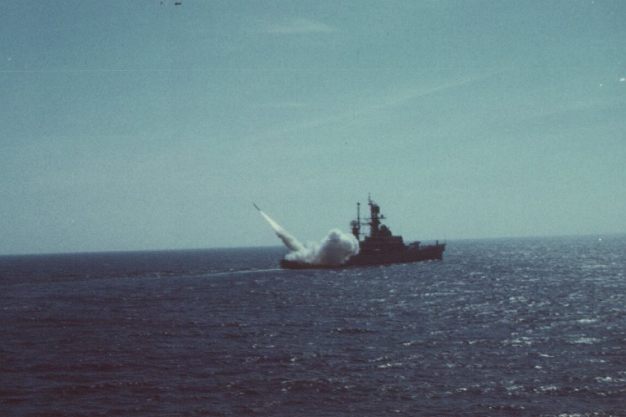 Missile shot off the aft launcher, December 1975. Photo taken by GMM2 C. Ray. |