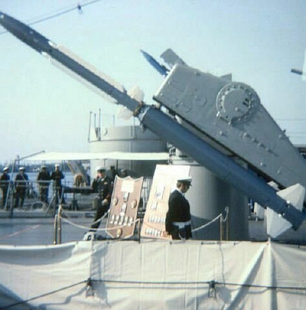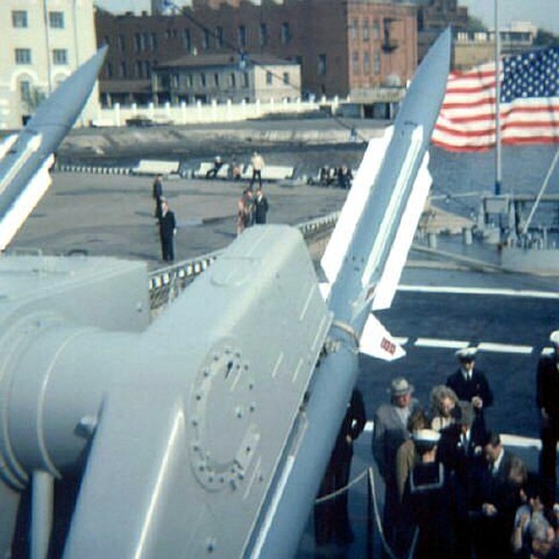 191k | Detailed image of the forward missile launcher, The ASROC launcher can be seen at the bottom of the superstructure. | USN | |