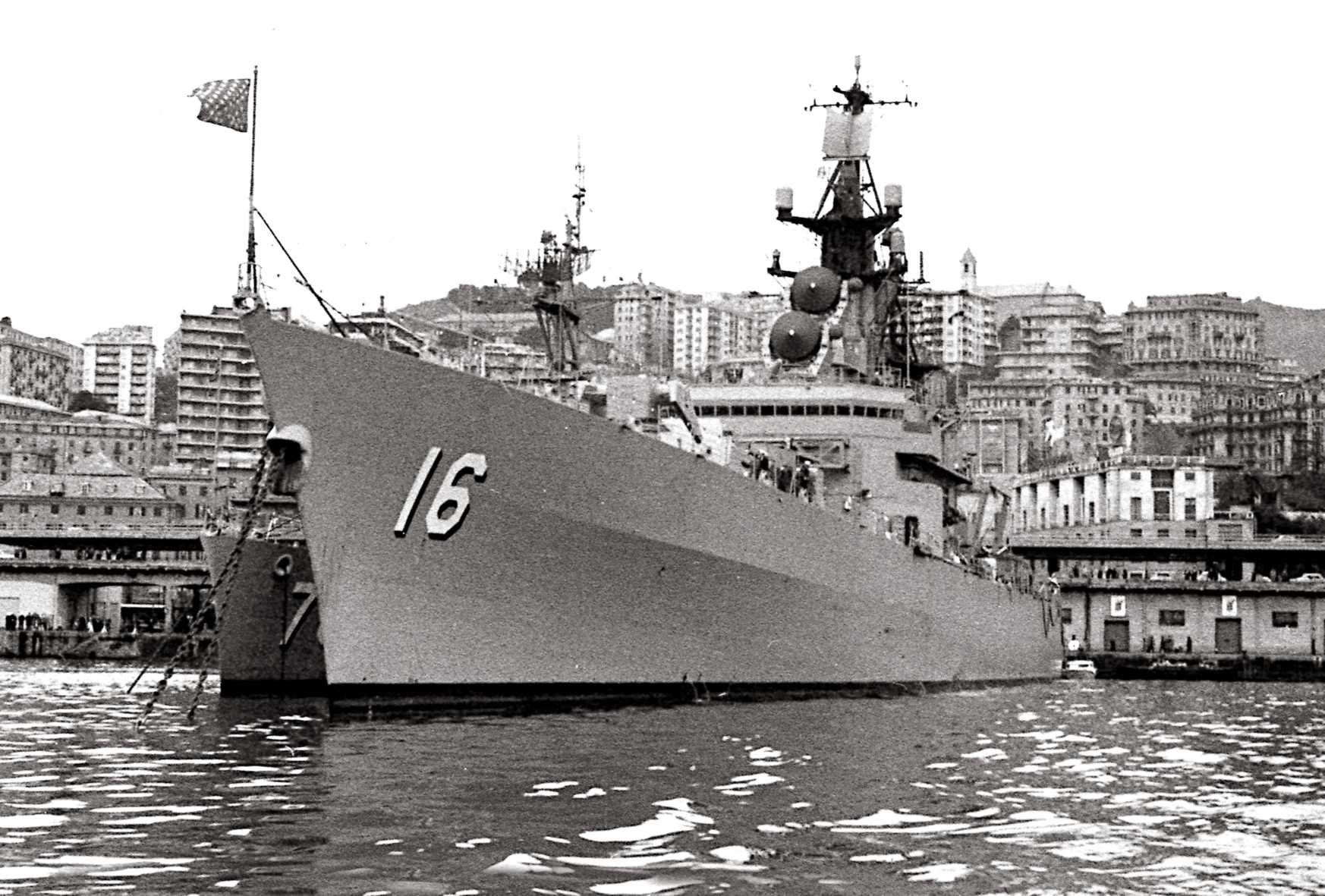 214k | Port bow view while Med-moored in Genoa, Italy on 04 August 1964. | Carlo Martinelli | |