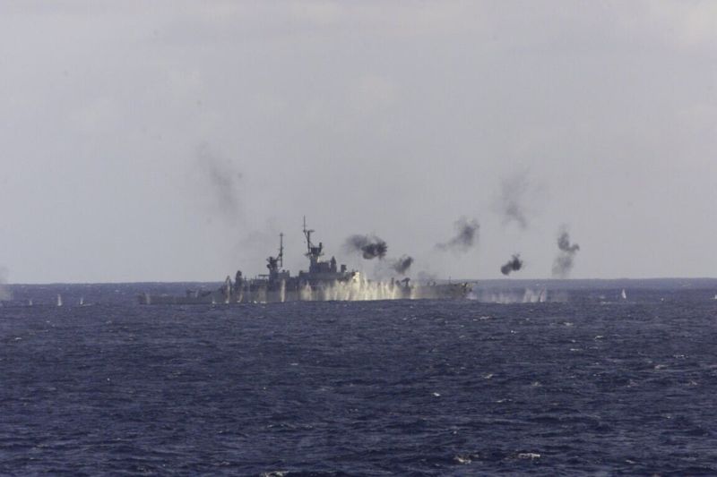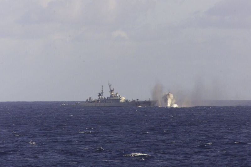 39k | On 31 May 2001 the guided missile cruiser Reeves (CG 24) becomes a target for bombs dropped by Royal Australian Airforce F-111s, missiles from U.S. Naval warships and shells from Royal Australian Naval vessels as part of a HULKEX off the coast of Queensland, Australia This was the final military activity in the month-long, combined Australian and United States Exercise Tandem Thrust 2001. The Reeves sank below the surface at approximately 12:30pm AEST, approximately 170 nautical miles east of Fraser Island in 12,000 ft of water. | U.S. Navy |