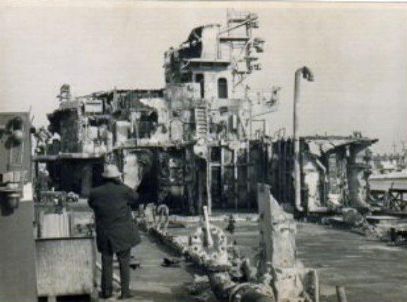 2.75m | A view of interior damage sustained by the guided missile cruiser USS Belknap (CG 26) when the ship collided with the aircraft carrier USS John F. Kennedy (CV 67)) during night operations on 22 November 1975. National Archives photo #6420099 |