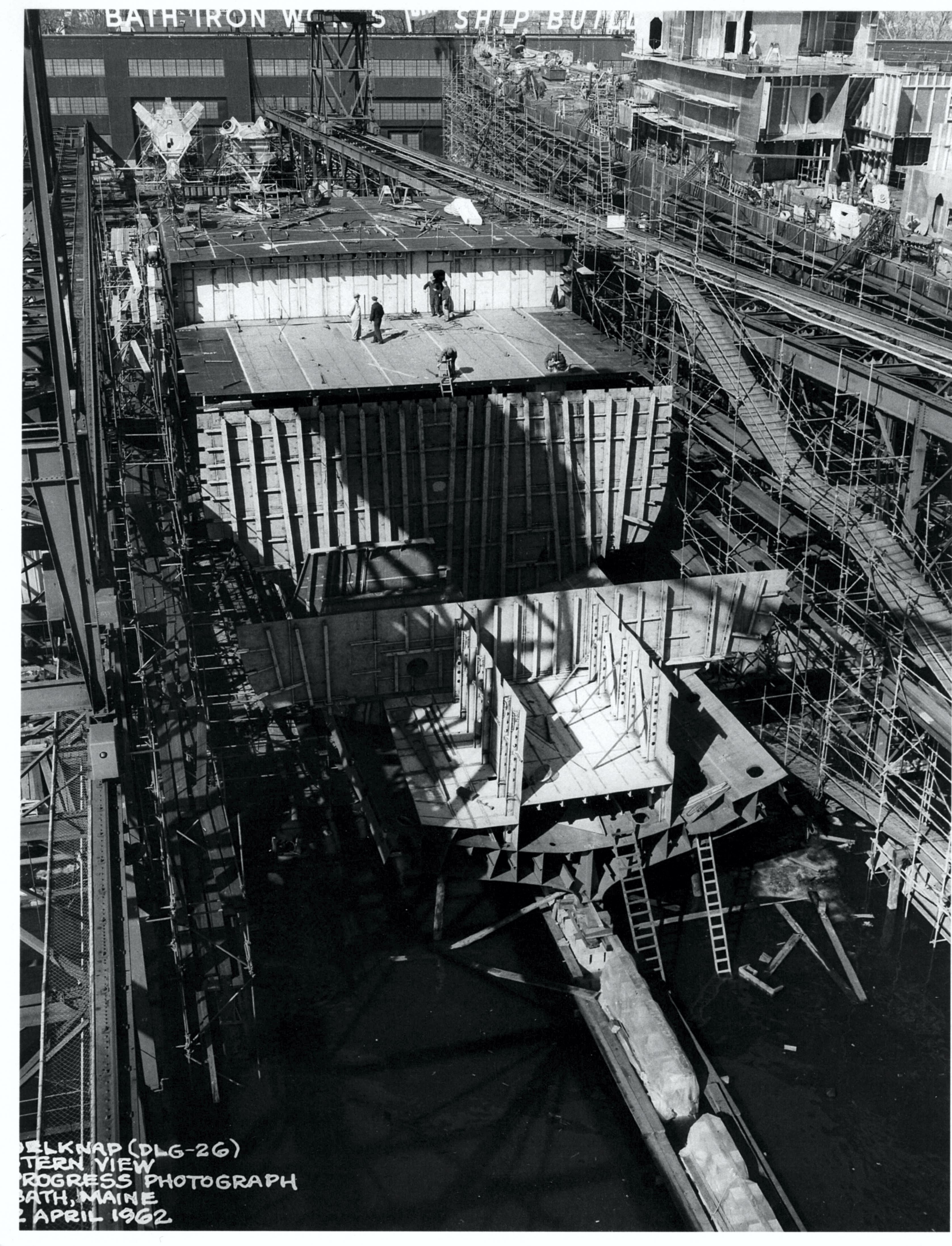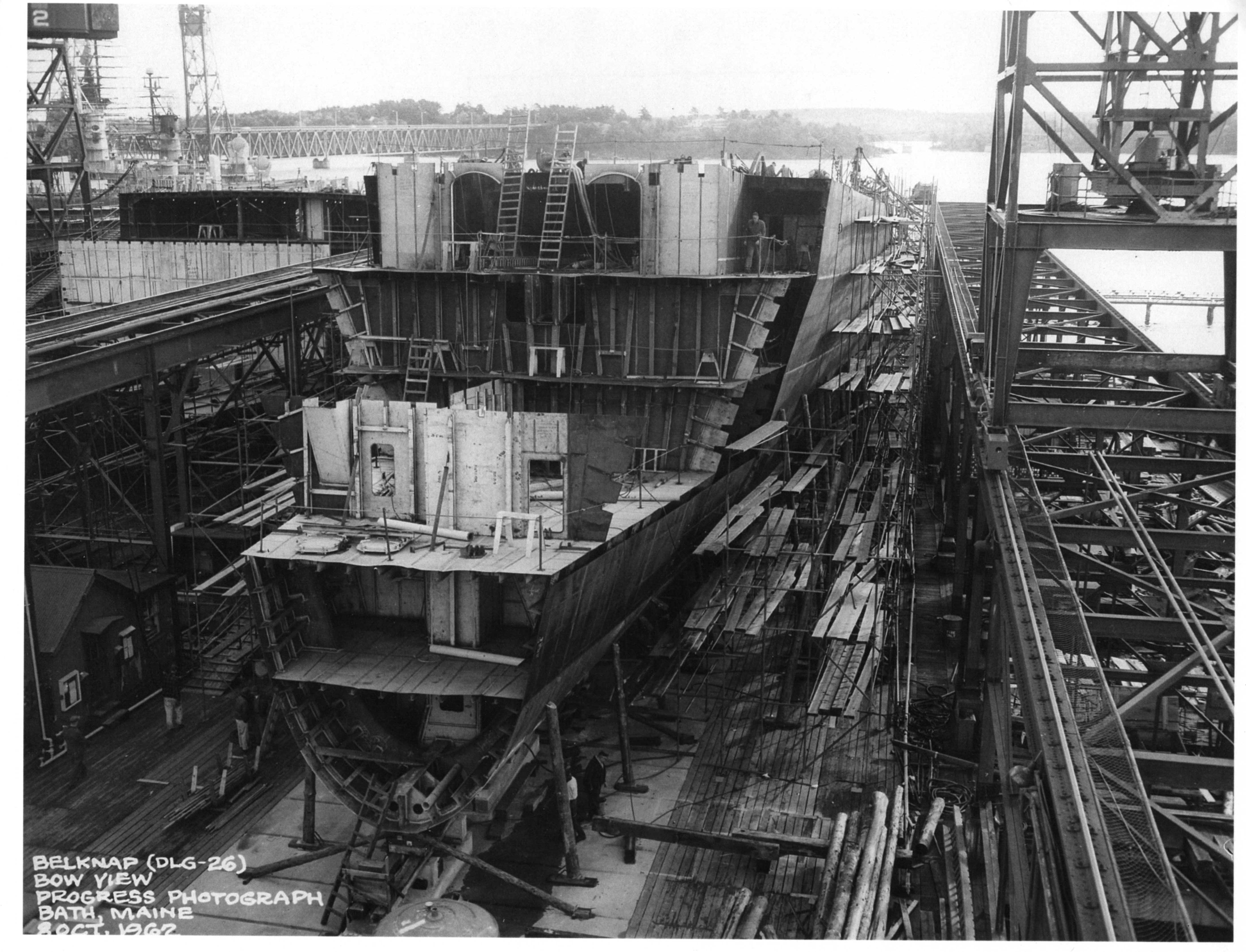 398k | Josephus Daniels and Belknap under construction at Bath Iron Works in 1964. | Official © Bath Iron Works Image |