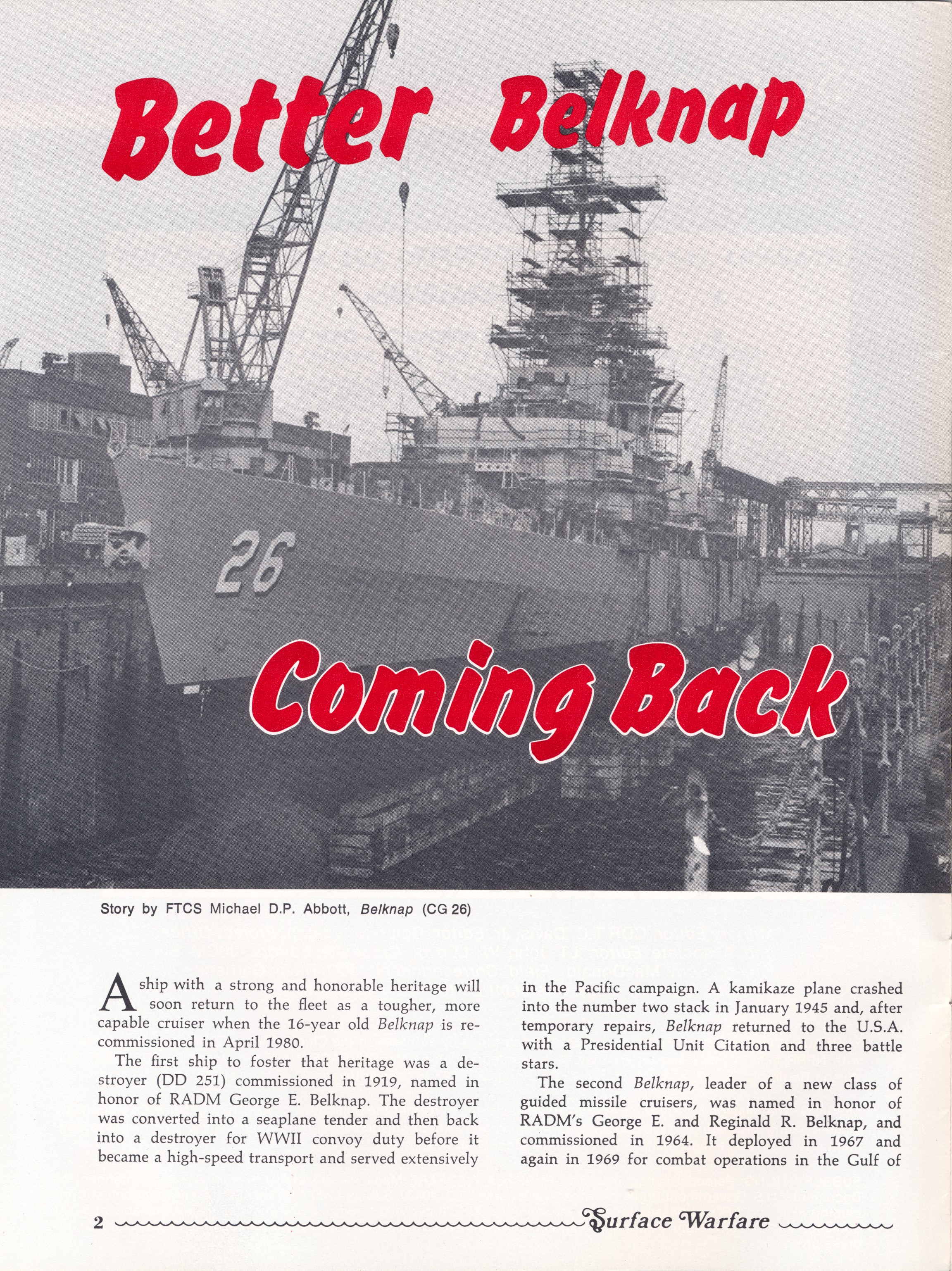 2.4m | An Article in the December 1979 issue of Surface Warfare Magazine titled "Better Belknap Coming Back". | Joe Neumann, retired PNSY engineer |
