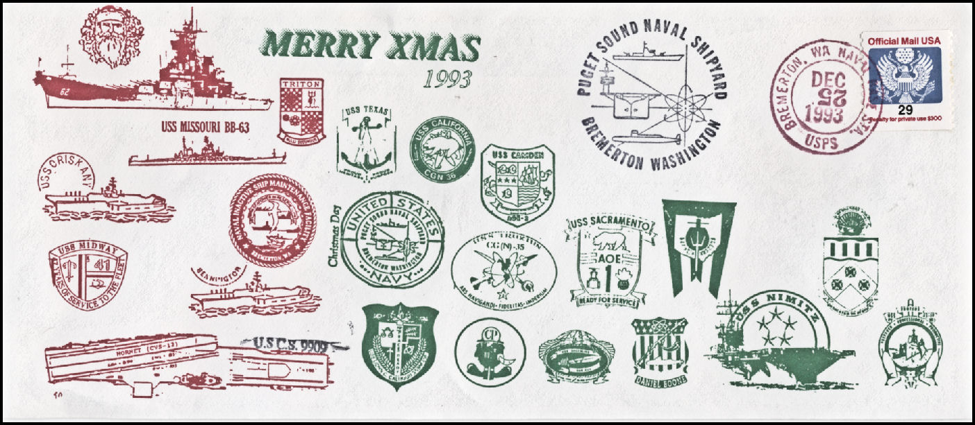 219k | Christmas 1993 postal cover, Bremerton Naval Station, 25 December 1993. | Tom Armstrong | |