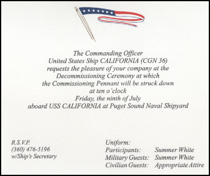 71k | Decommissioning Ceremony invitation. | Tom Armstrong | |