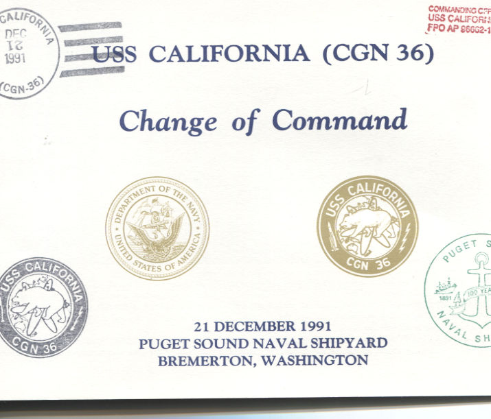 99k | Change of Command postal cover, 21 December 1991. | Tom Armstrong | |
