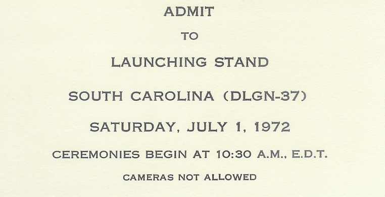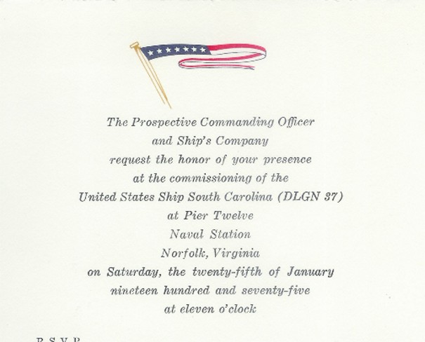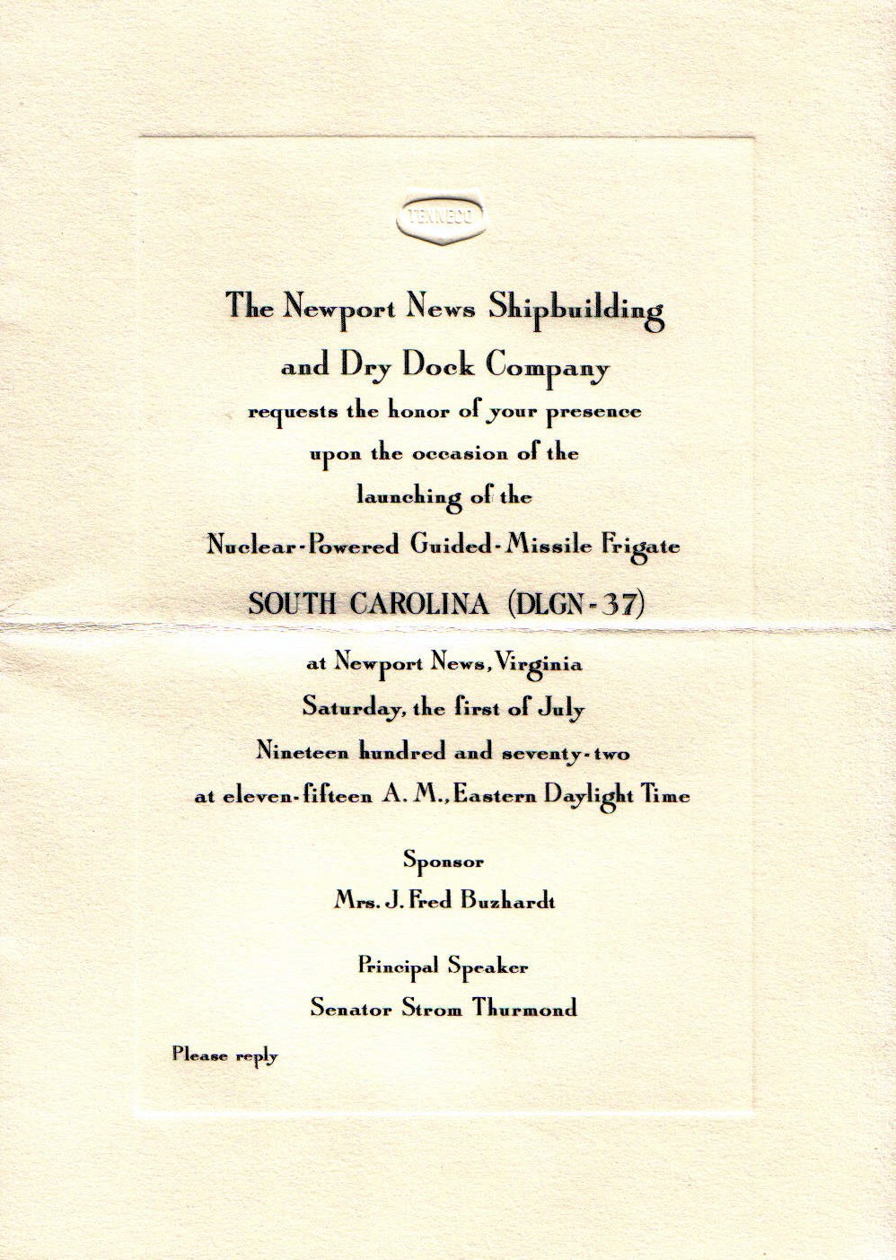 342k | Launching invitation for USS South Carolina (DLGN 37), 01 July 1972. | Robert M. Cieri | |
