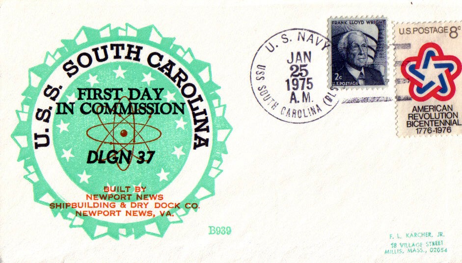 143k | Commissioning first day postal cover, 25 January 1975. | Robert M. Cieri | |