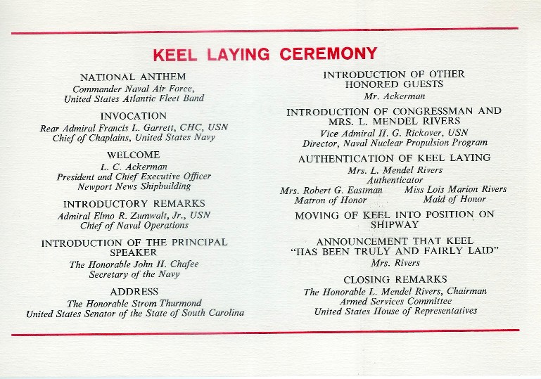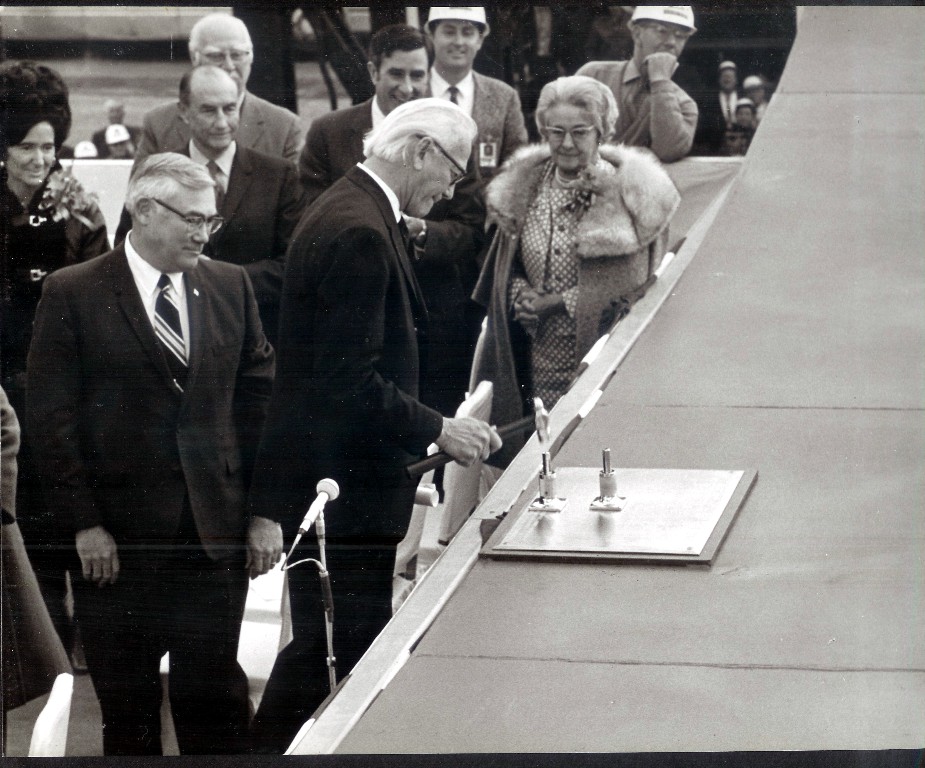 189k | Admiral Hyman Rickover and Mrs. Rivers at the Keel laying ceremony, 1 December 1970. | Ron Reeves | |