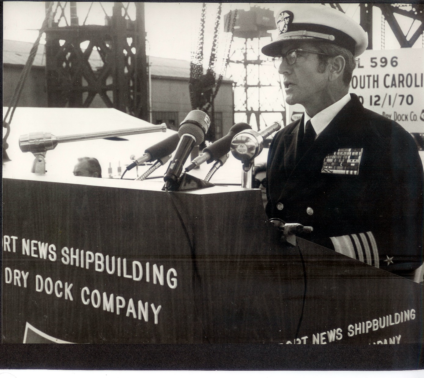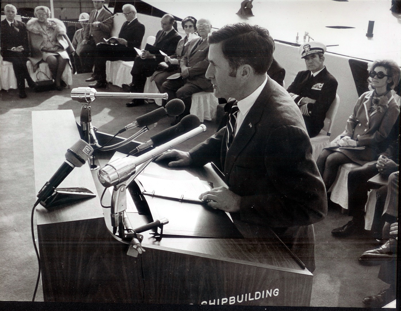 452k | Admiral Zumwalt speaking at the Keel laying ceremony,1 December 1970. | Ron Reeves | |