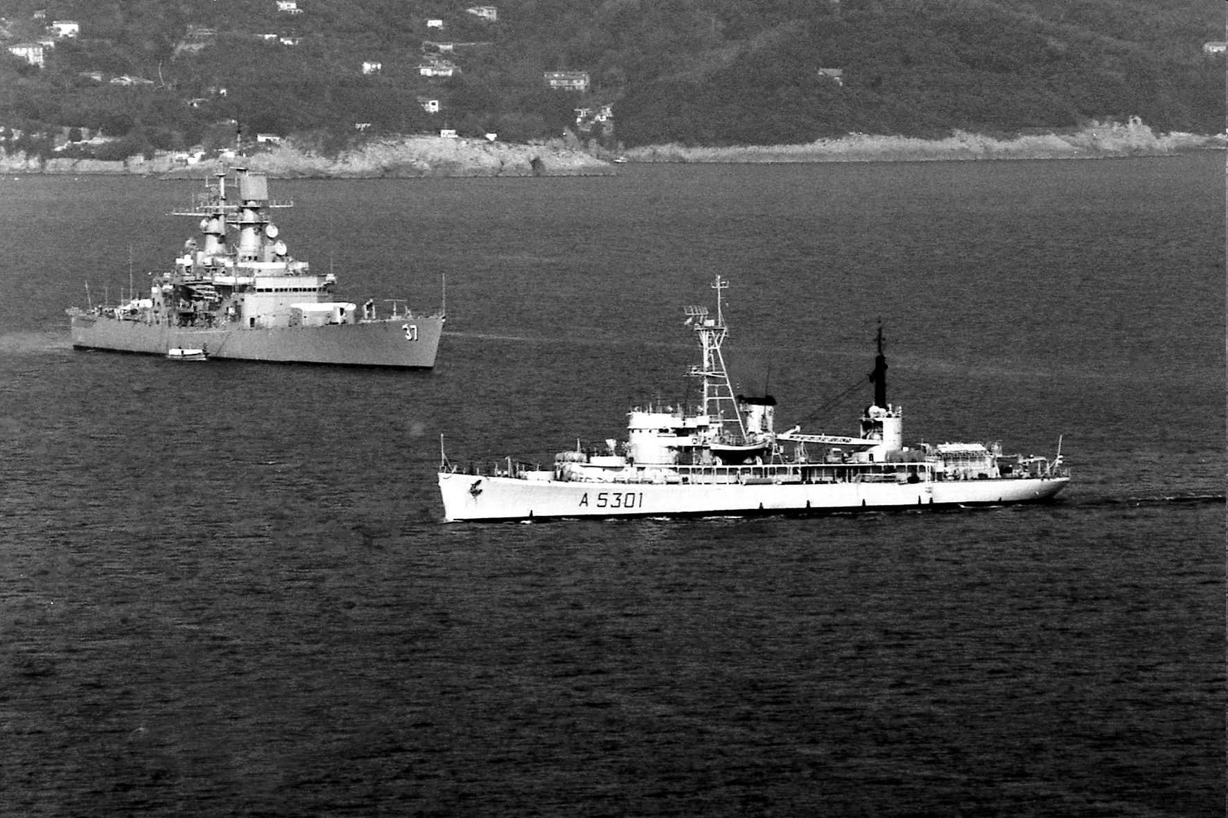 412k | Italian Special Forces Tender Pietro Cavezzale (A5301) passing USS South Carolina (CGN 37), 28 April 1987. La Spezia, Italy. | Carlo Martinelli | |