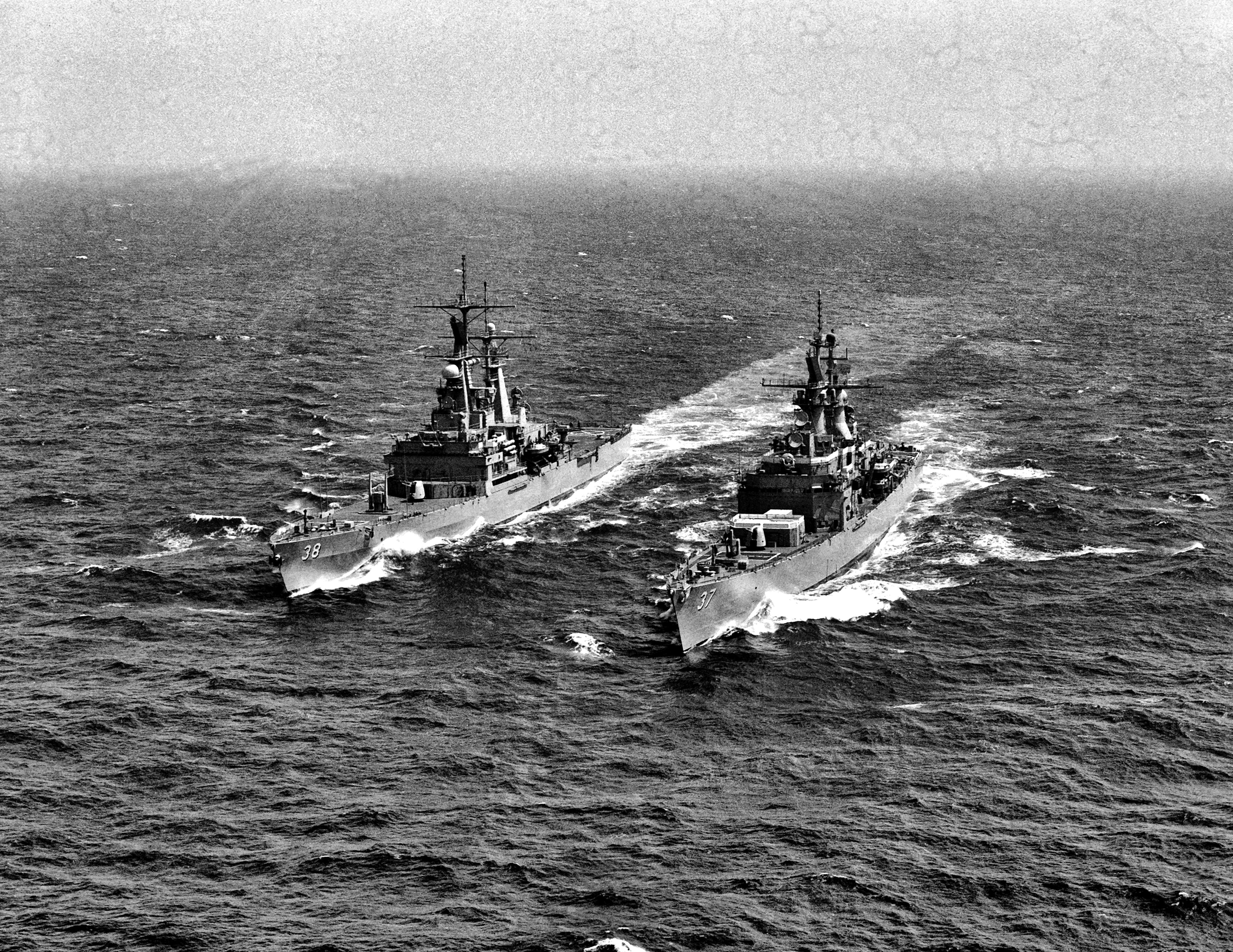 Task Group from 1976 with South Carolina (CGN 37) (top), Nimitz