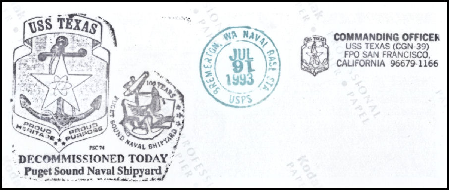 112k | Postal Cover date stamped on decommissioning day. | Tom Armstrong | |