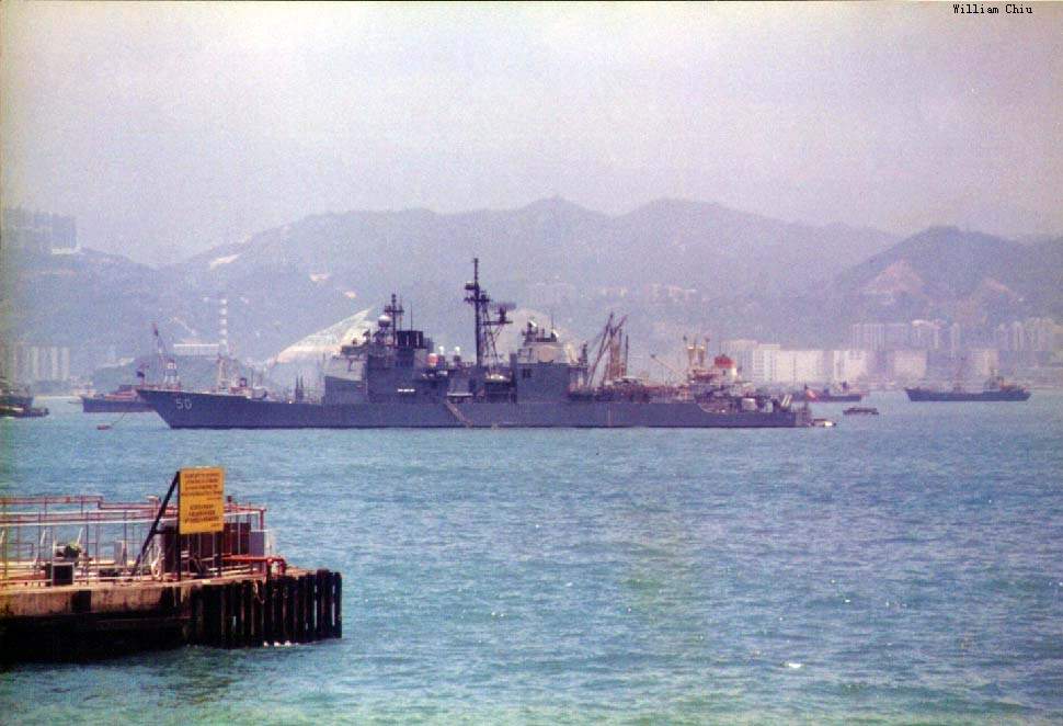 76k | Port side view, anchored in Hong Kong Harbor, May 1991. | William Chiu |