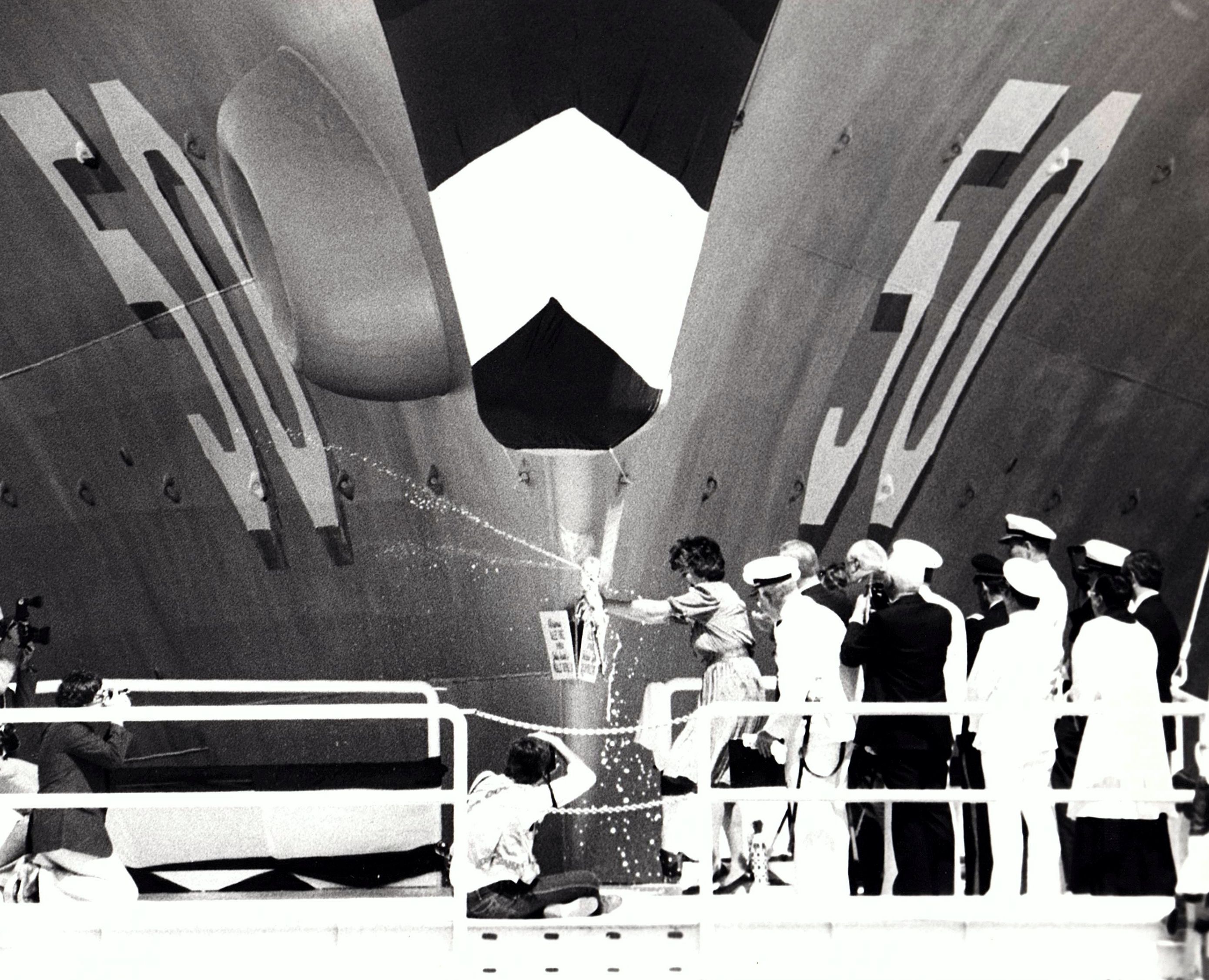 790k | Valley Forge being christened by her sponsor, Mrs. Julia V. Taft, wife of William H. Taft, III, Deputy Secretary of Defense | Dale Hargrave |