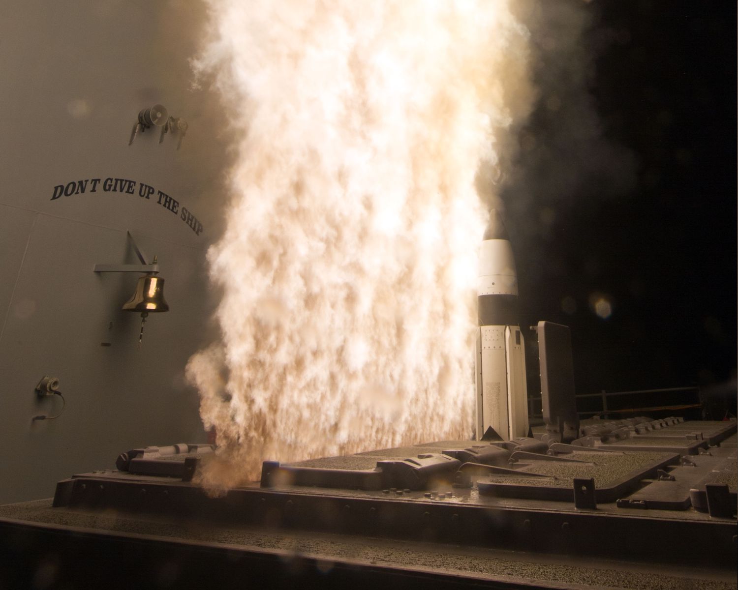 PACIFIC OCEAN, 15 May 2013 - A Standard Missile-3 (SM-3) Block 1B interceptor missile is launched from the guided-missile cruiser USS Lake Erie (CG 70) during a Missile Defense Agency and U.S. Navy test in the mid-Pacific. The SM-3 Block 1B successfully intercepted a target missile that had been launched from the Pacific Missile Range Facility at Barking Sands in Kauai, Hawaii. Lake Erie detected and tracked the target with its onboard AN/SPY-1 radar. The event was the third consecutive successful intercept test of the SM-3 Block IB missile. U.S. Navy photo #130515-D-ZZ999-005 |
