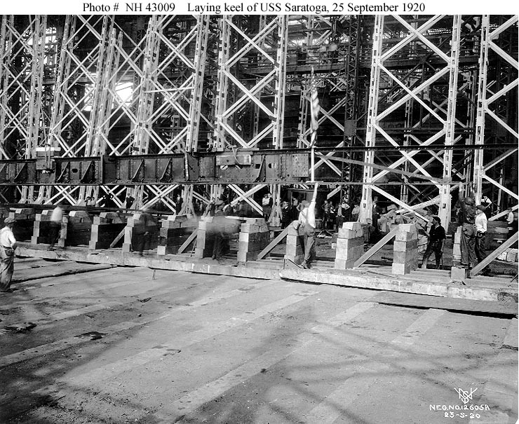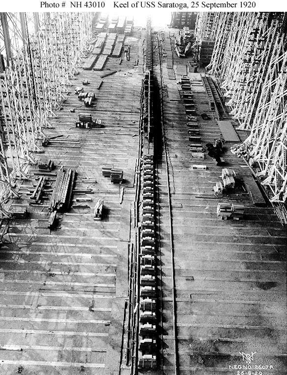 Under construction at the New York Shipbuilding Company shipyard, Camden, New Jersey, 25 September 1920, immediately after the keel was laid. U.S. Naval Historical Center Photograph #NH 43010. |
