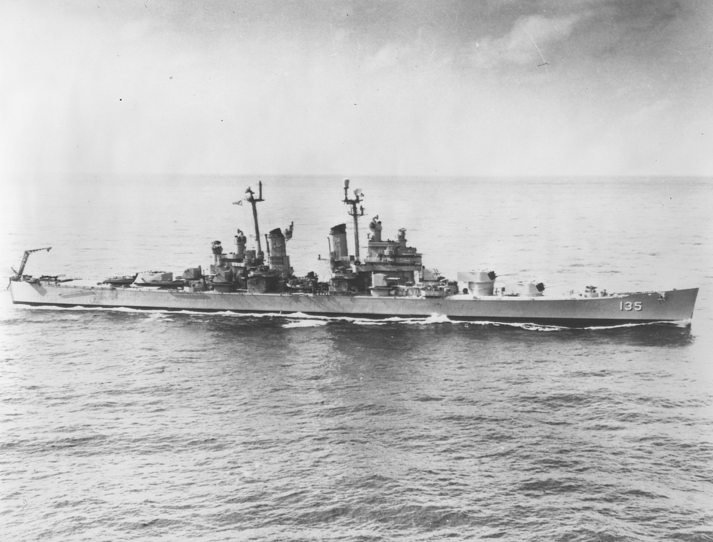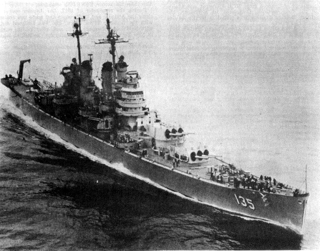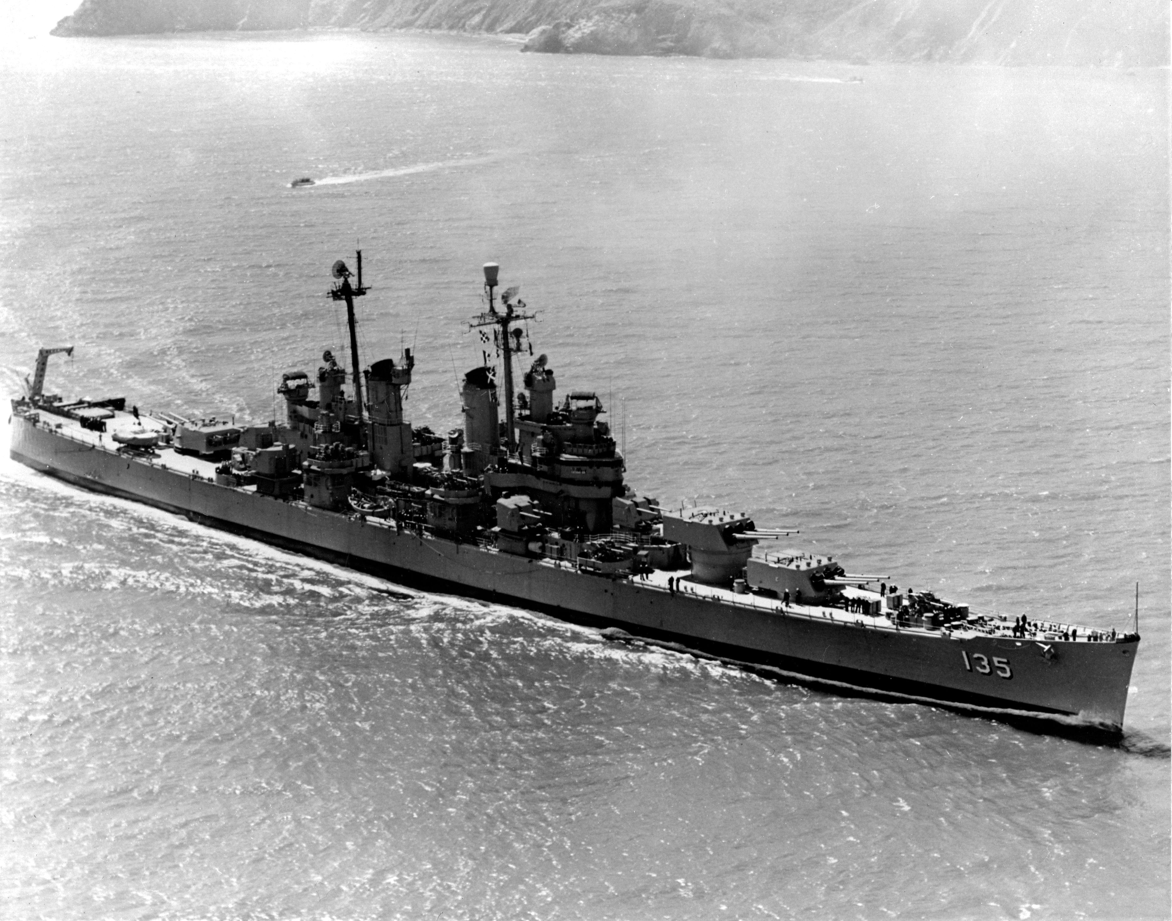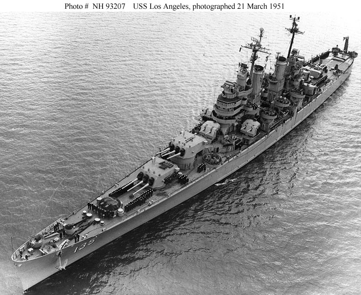 USS Los Angeles (CA 135) Photographed 21 March 1951 by PH1c Cooper. Collection of Admiral Arleigh A. Burke, USN. Official U.S. Navy Photograph, from the collections of the Naval Historical Center #NH 93207. |