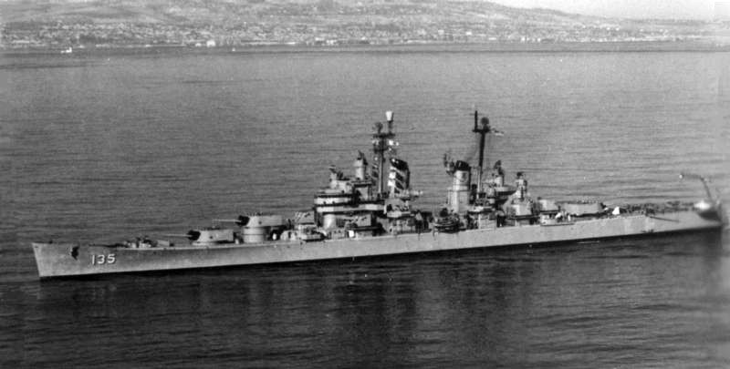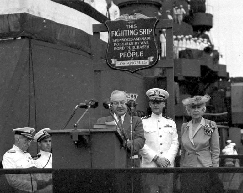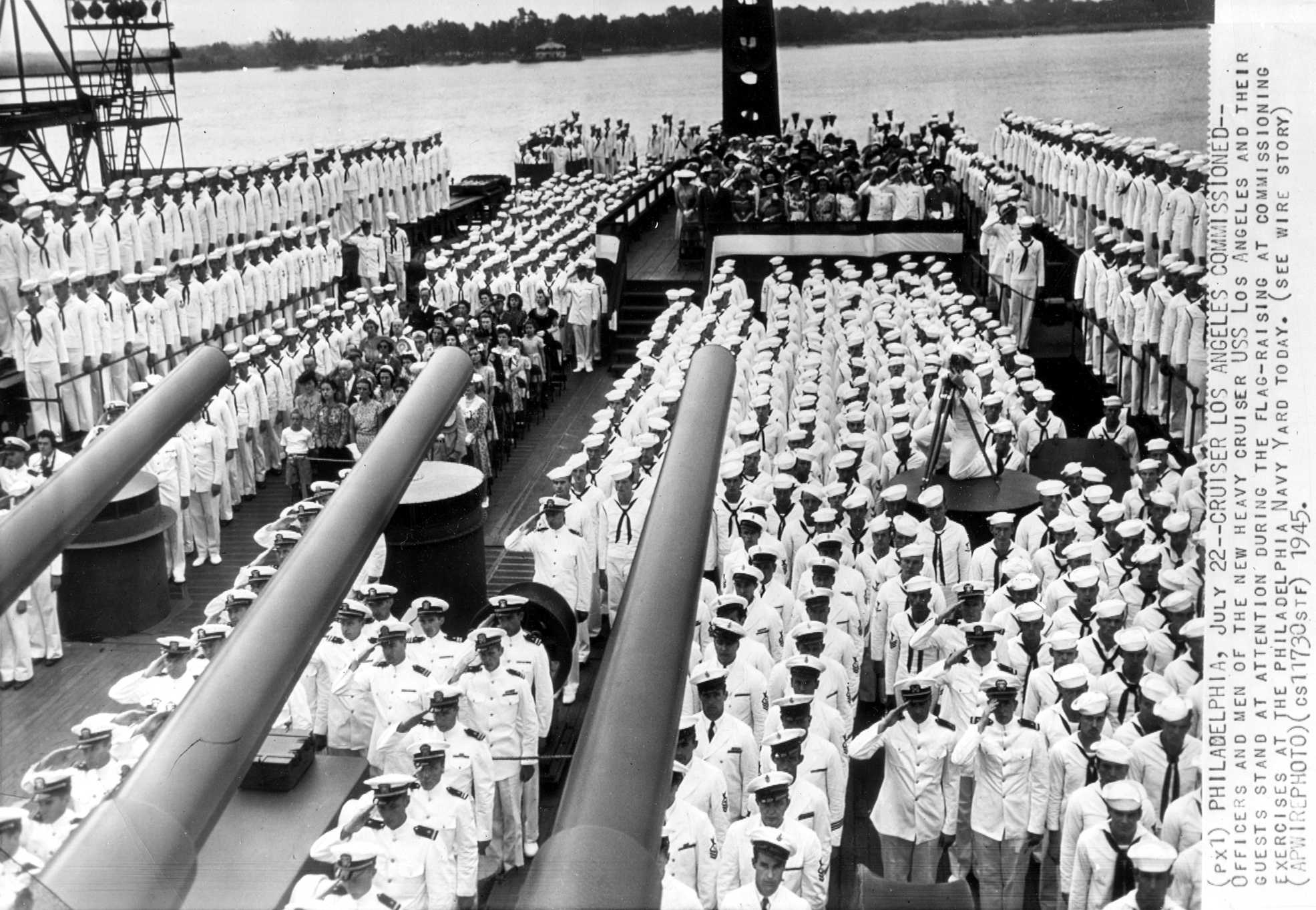 USS Los Angeles (CA 135) commissioning ceremony, 22 July 1945. Associated Press wirephoto |